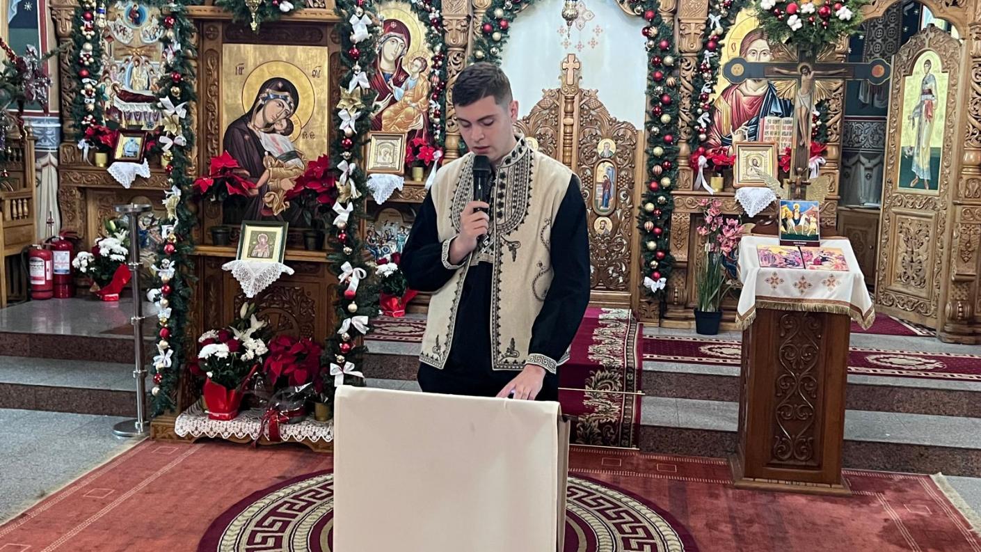 În duminica ce a urmat zilelor de Crăciun, credincioşii au avut bucuria de a-l asculta pe tânărul talentat Denis Voicu, elev al Colegiului Naţional de Artă „George Apostu” din Bacău, un prieten apropiat al Parohiei Holt.