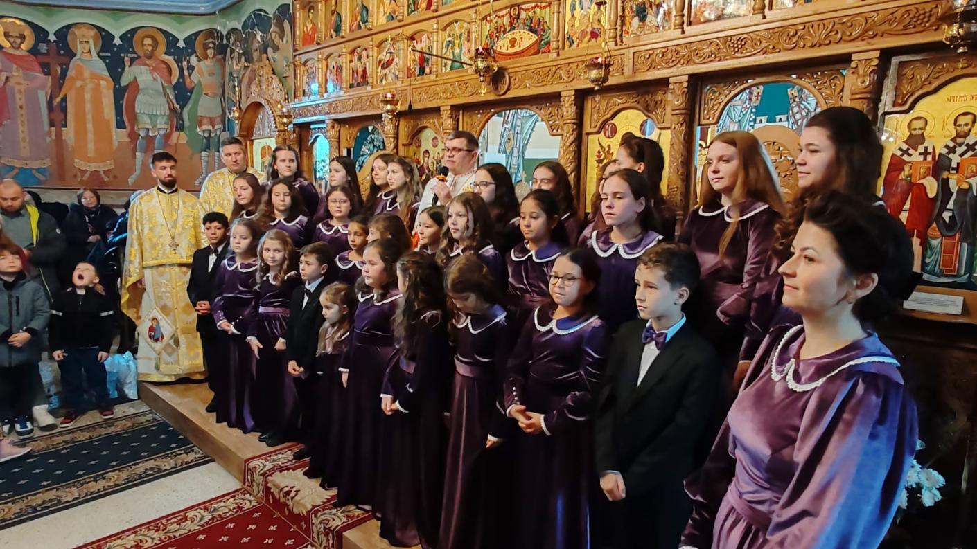 Cu glasurile lor cristaline, au reuşit să încânte credincioşii prezenţi la Sfânta şi Dumnezeiasca Liturghie, interpretând o selecţie de Colinde tradiţionale româneşti, vestind astfel sărbătoarea Naşterii Mântuitorului Iisus Hristos.