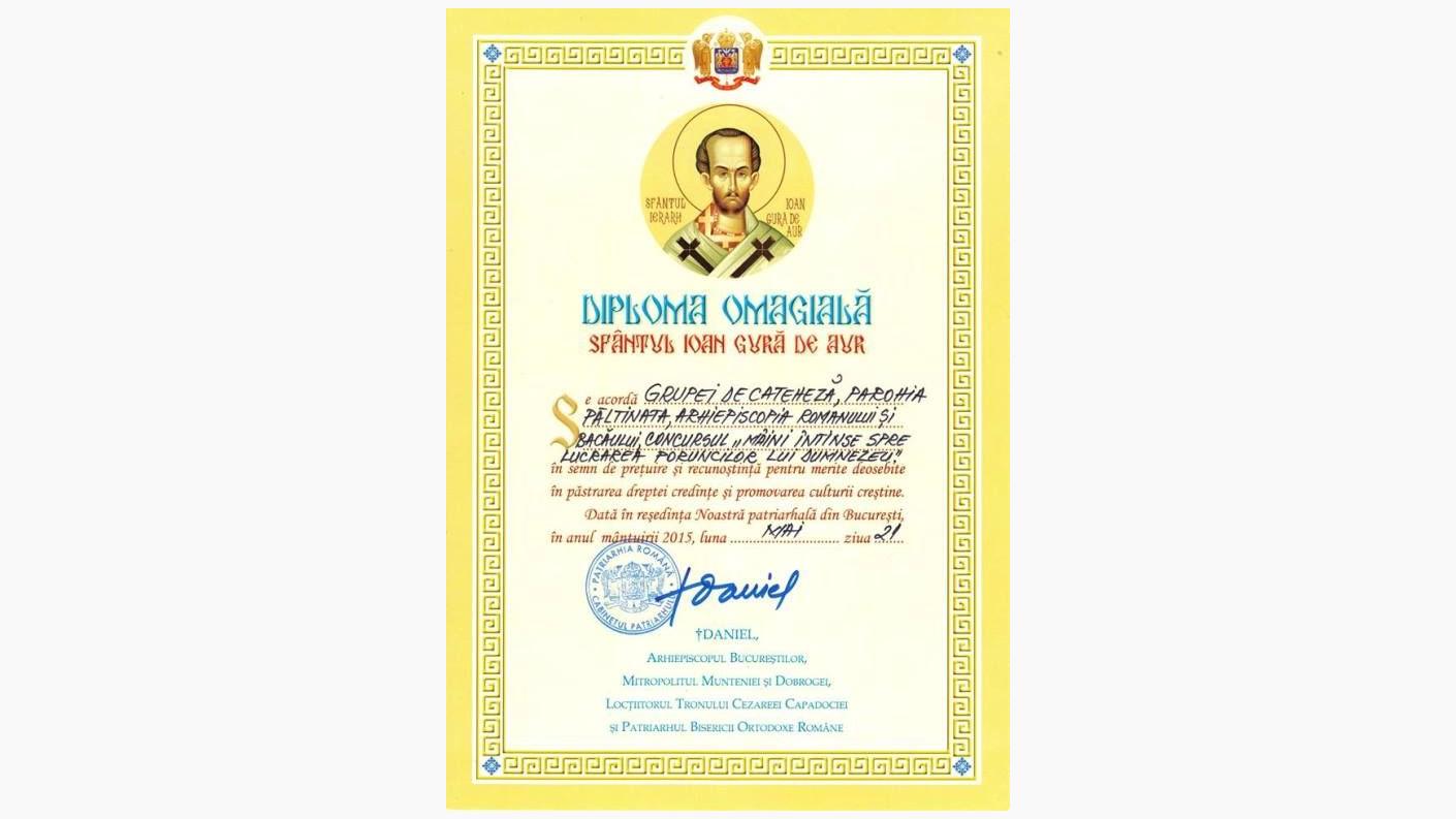 La rândul său, coordonatorul acestui proiect a precizat: “Ne onorează această distincţie şi ne responsabilizează ca pe viitor să continuăm activităţile catehetice în parohie şi să încercăm cooptarea tuturor copiilor în activităţile desfăşurate”. (Preotul Valentin Chircu, parohul de la Păltinata).
