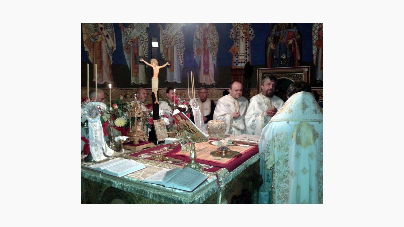 Slujba a avut loc la demisolul Catedralei, acolo unde se află și mormântul vrednicului de pomenire episcop al Hușilor, Ioachim Mareș. Cu acest prilej, după dumnezeiasca Liturghie, Preasfințitul Ioachim a oficiat parastasul fostului episcop al Hușilor, care a activat în această zonă, atât în calitate de preot, cât și de arhiereu-vicar al Epicopiei Romanului și Hușilor până în anul 1996, fiind și cel care a început lucrările la Catedrala „Înălțarea Domnului”, lucrări ce continuă acum sub coordonarea Preasfinţitul Ioachim Băcăuanul, Episcop Vicar al Arhiepiscopiei Romanului şi Bacăului.