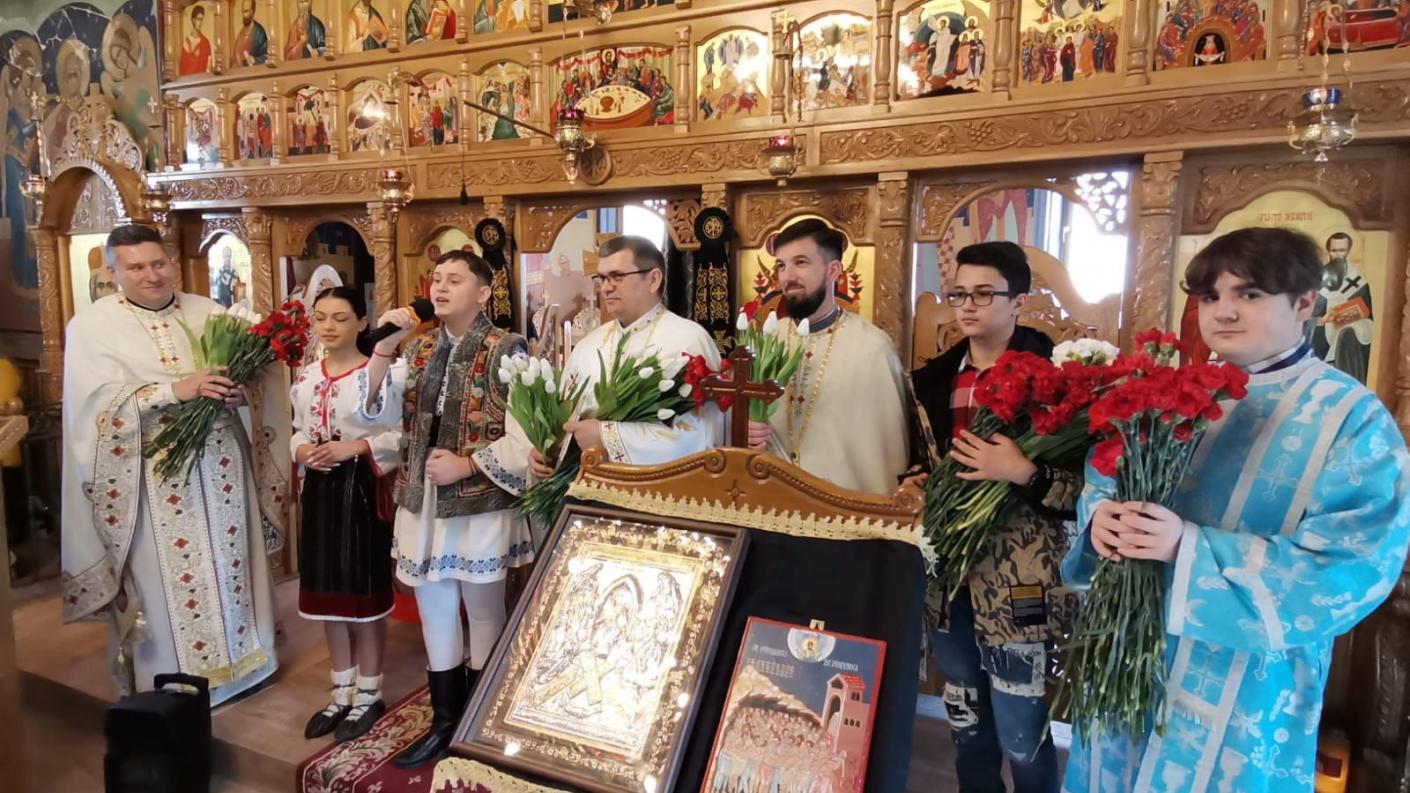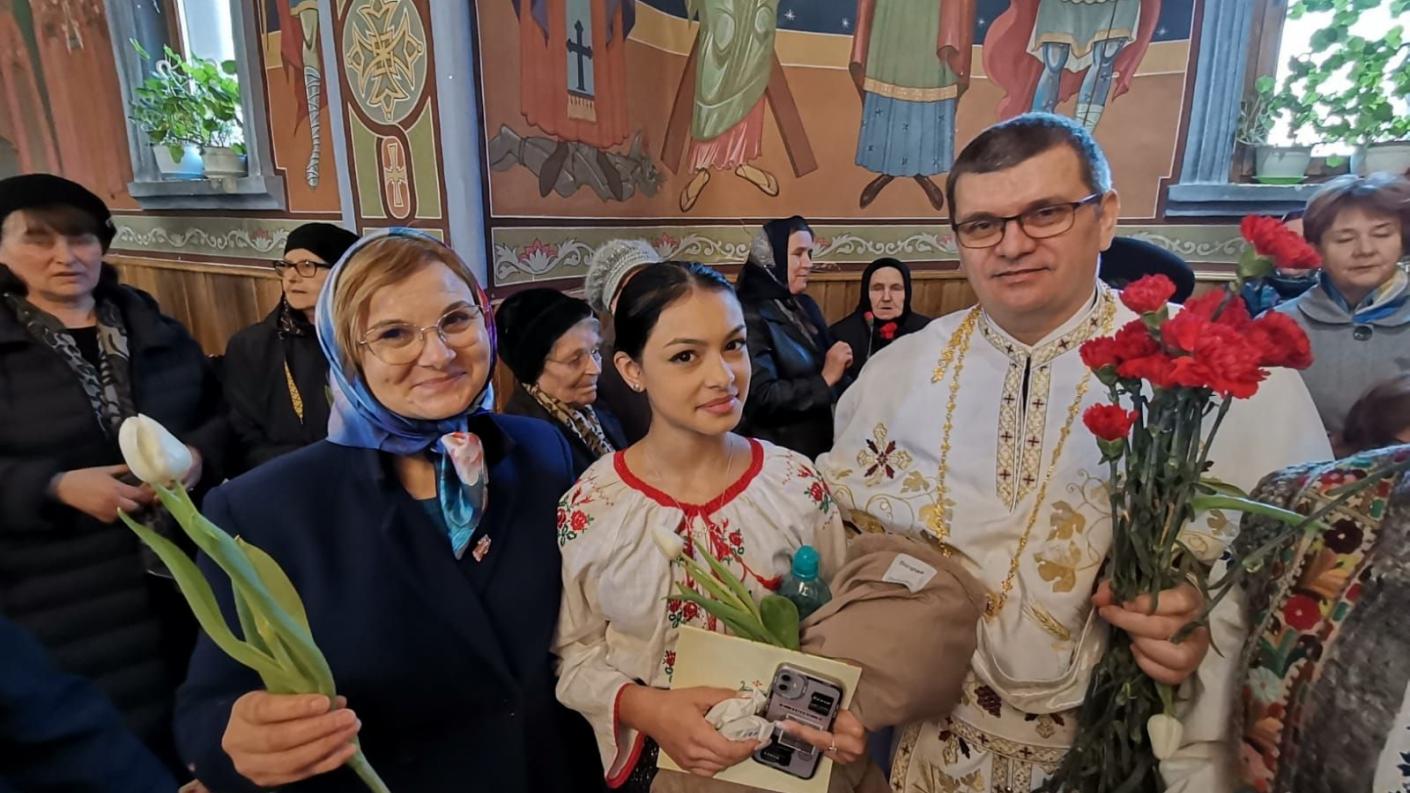 Atmosfera de sărbătoare a fost întregită de evoluţia artistică a tinerilor Lefter Daria (clasa a VII-a D) şi Lupescu Denis (clasa a VII-a A), elevi ai Şcolii Gimnaziale „Mihai Drăgan” Bacău, care au interpretat cântece dedicate mamei, fiinţei celei mai dragi, iar preoţii parohiei au împărţit flori tuturor doamnelor şi domnişoarelor aflate în biserică.