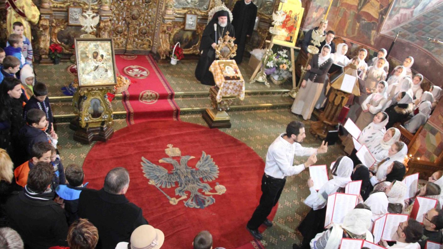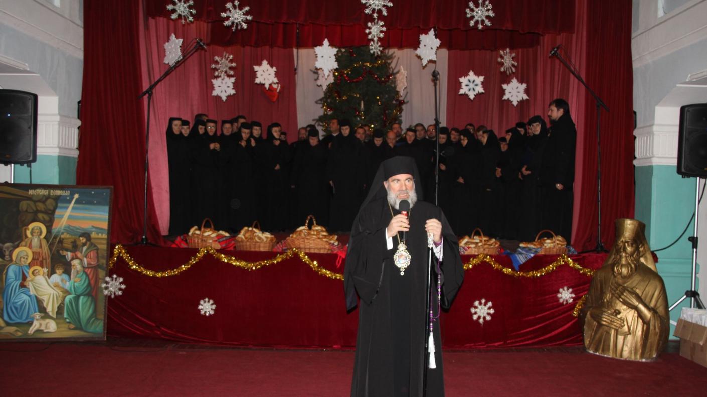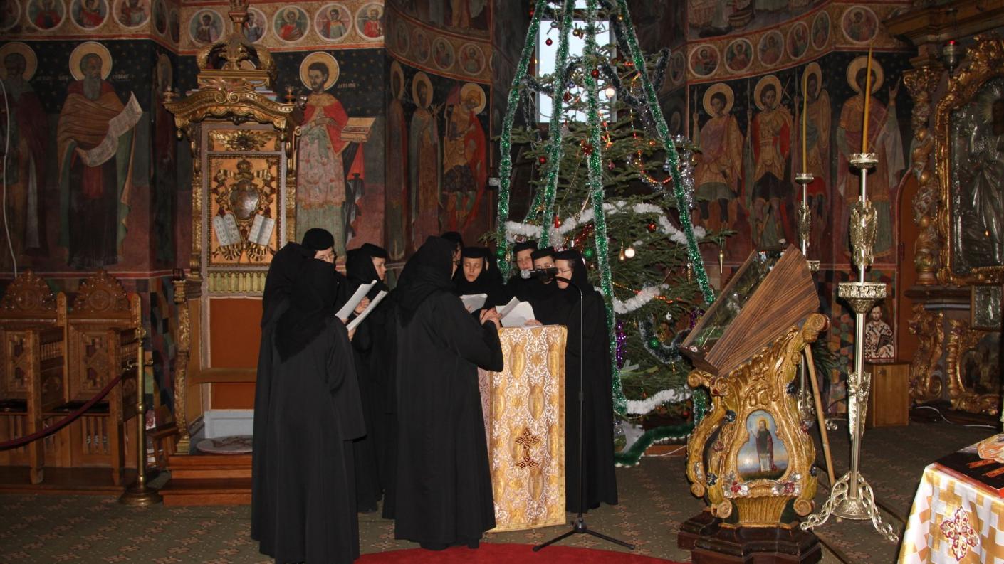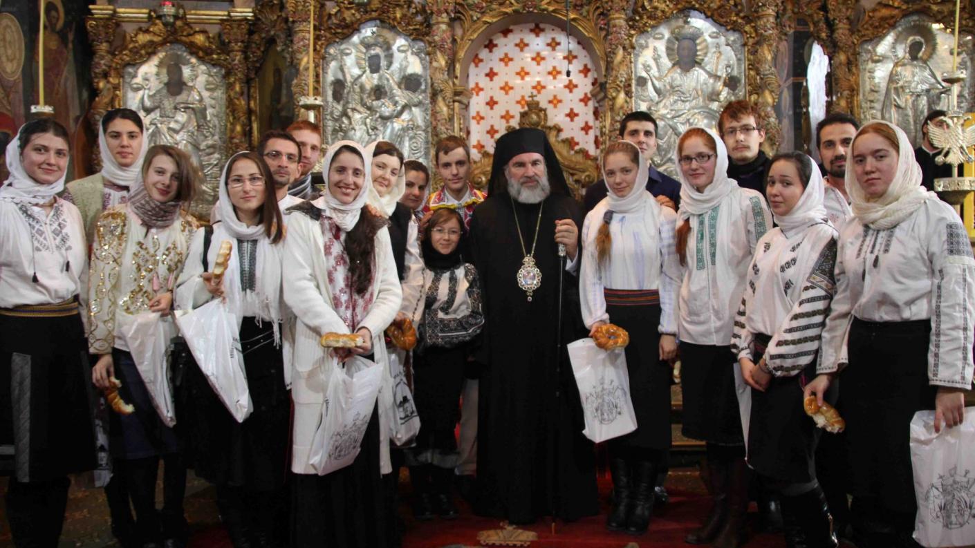 Duminica dinaintea Naşterii Domnului a fost o adevărată pregustare a praznicului împărătesc la Catedrala arhiepiscopală ”Sf. Cuv. Paracheva” din Roman. Colindători din diferite zone ale eparhiei au venit în inima arhiepiscopiei pentru a vesti momentul alesei şi sfintei bucurii a întrupării lui Dumnezeu Cuvântul. Sfânta Liturghie a fost oficiată de Preasfinţitul Părinte Ioachim Băcăuanul, Episcop-vicar al Arhiepiscopiei Romanului şi Bacăului, răspunsurile la strană fiind date de corul ”Filomelos” din Oneşti, coordonat de preotul Petru Cautiş. În contextul zilei a fost oficiată şi o slujbă de pomenire a eroilor care s-au jertfit pentru libertatea, credinţa şi demnitatea poporului român în decembrie 1989. La sfârşitul slujbei, credincioşii prezenţi în sfântul locaş, dimpreună cu Preasfinţitul Ioachim Băcăuanul, au fost colindaţi de corala oneşteană, ai cărei membri au primit daruri din partea ierarhului. La Catedrală au mai colindat tinerii membri ai ASCOR –filiala Bacău, precum şi elevi din Protopopiatul Roman.