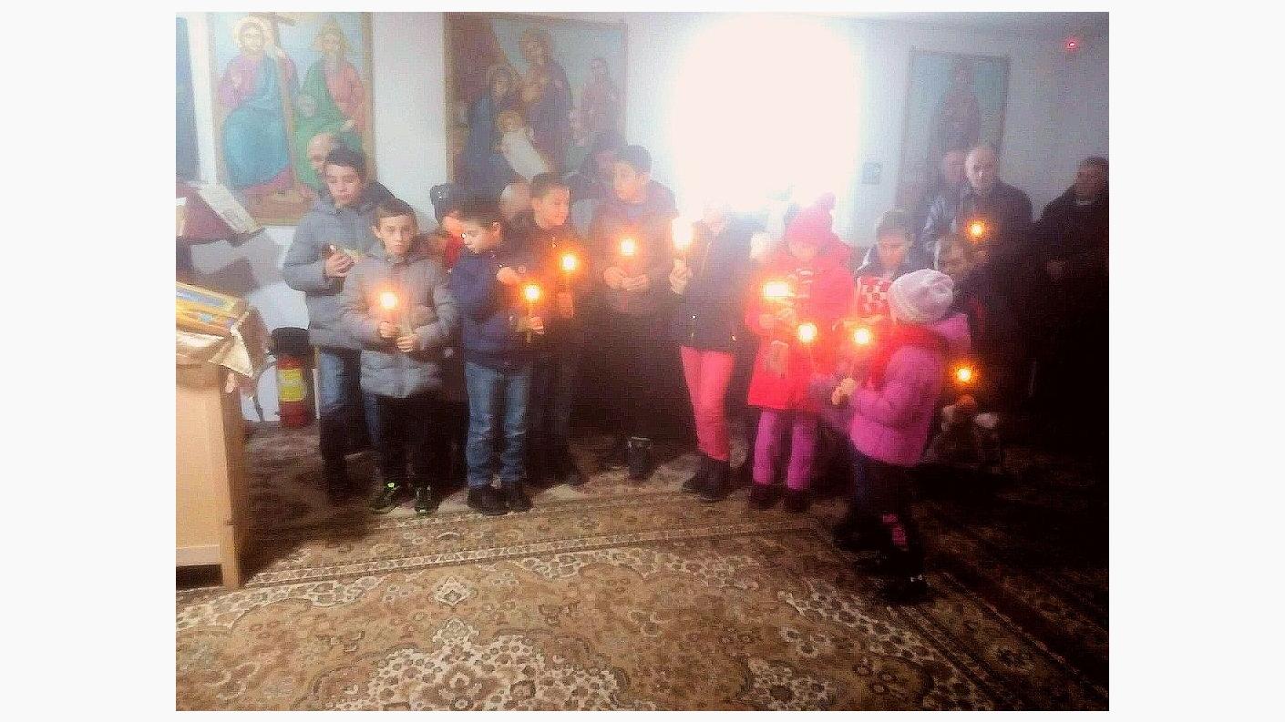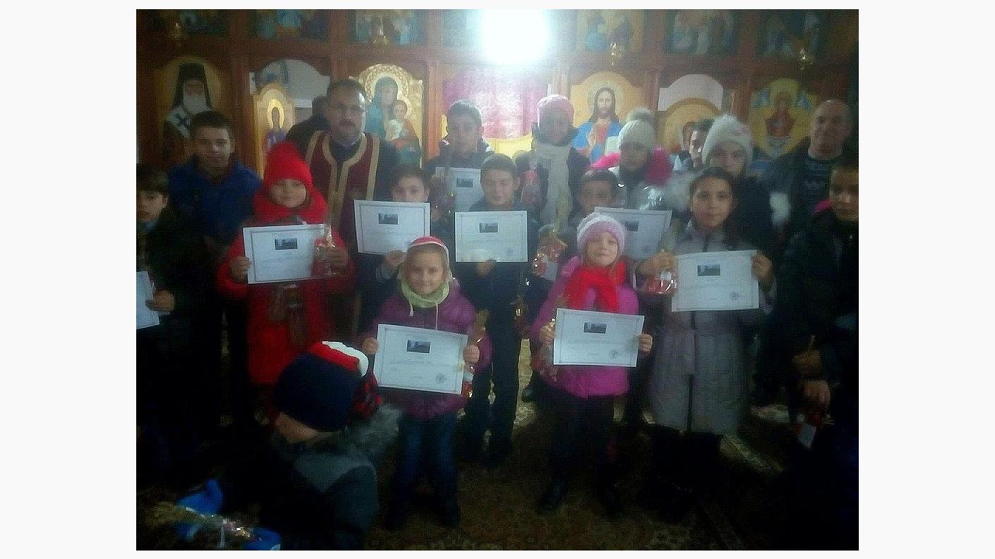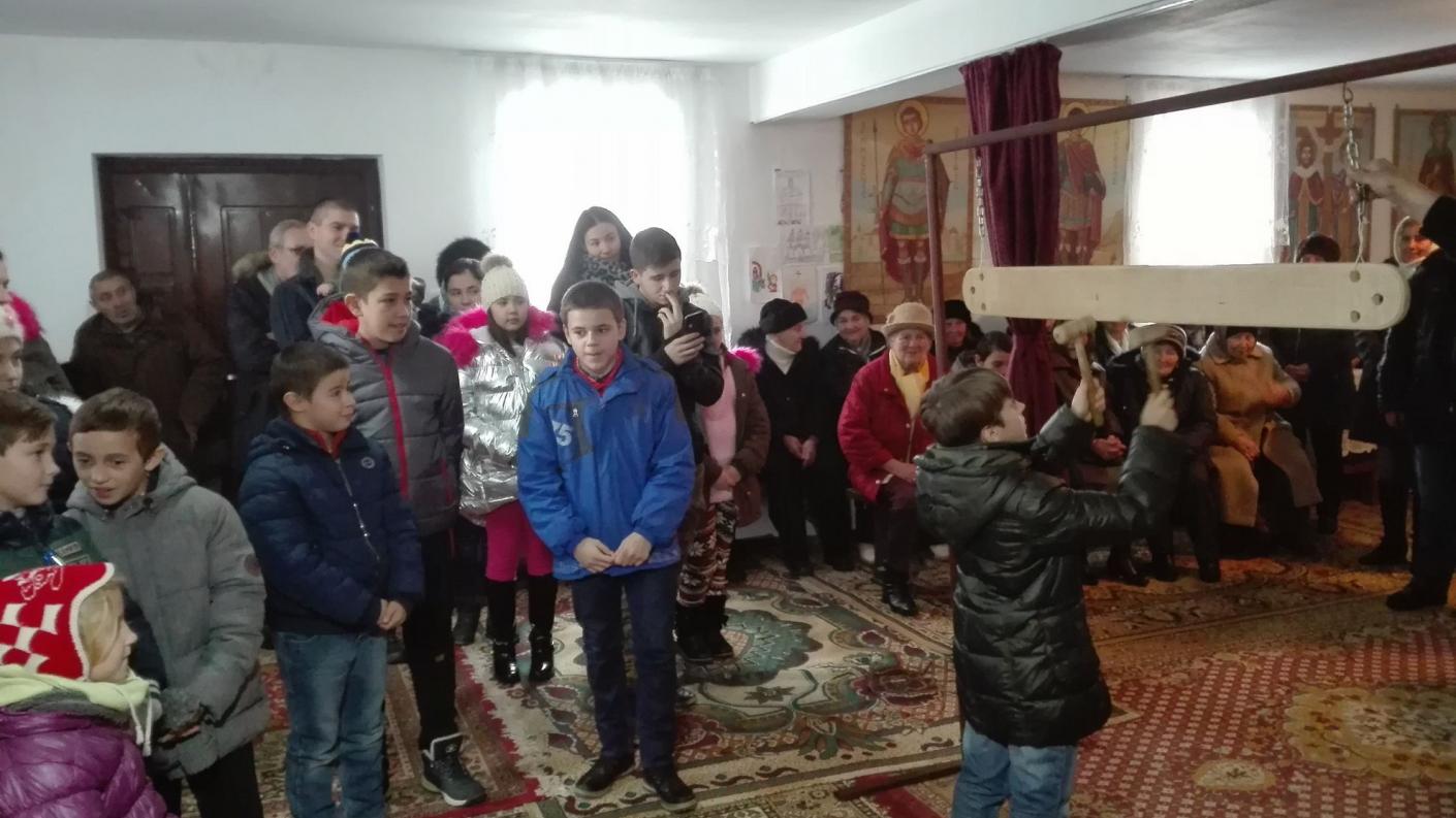 Animați de ninsoarea ce învăluia satul într-o lumină ca de basm, desprinsă parcă din „Amintirile din copilarie” ale lui Ion Creangă, încă de la primele ore ale dimineții, biserica a devenit plină de copiii ce și-au ocupat locurile la strană. Copilașii au cântat pricesne și s-au împărtățit cu Sfintele Taine.