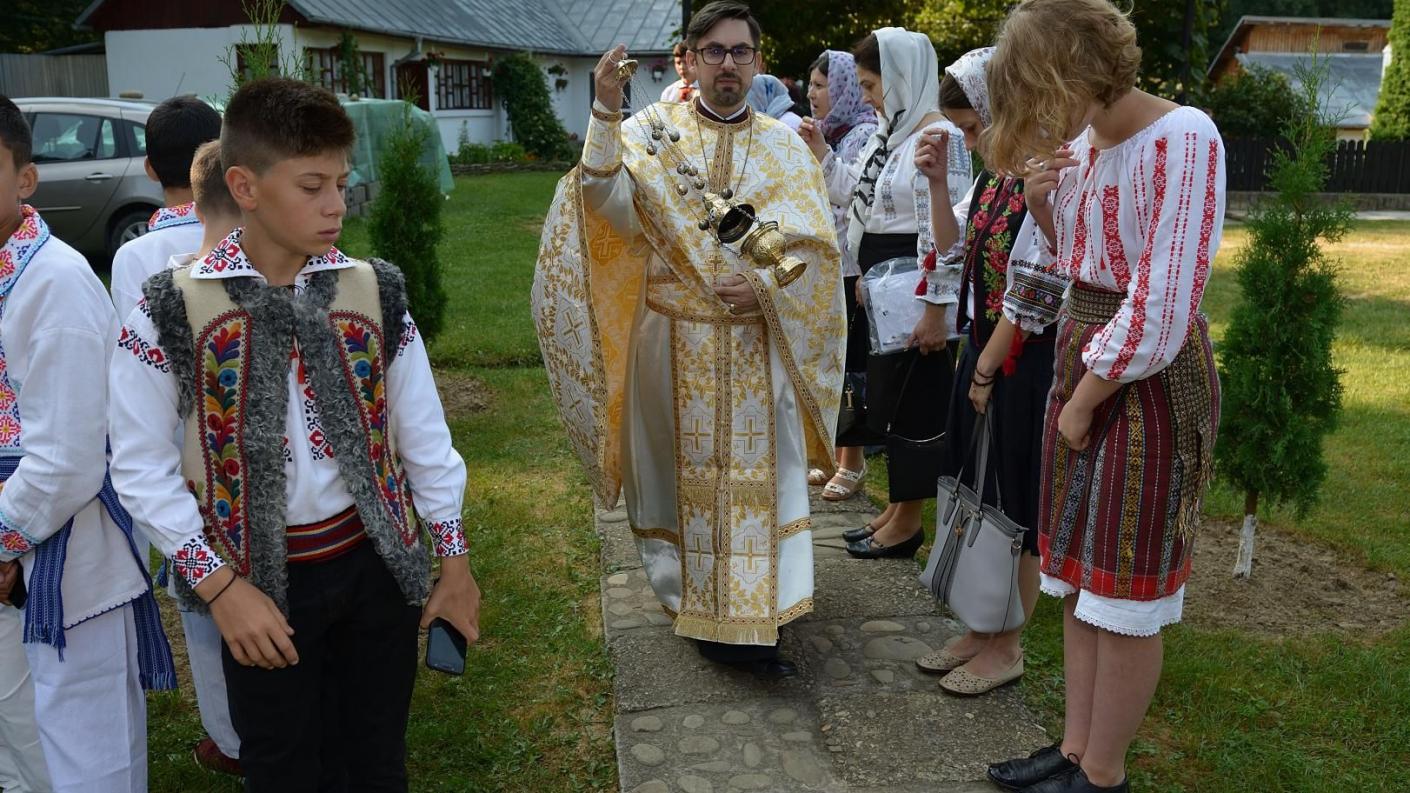 După săvârșirea Sfintei Liturghii, părintele inspector eparhial a transmis binecuvântarea Părintelui Arhiepiscop Ioachim cu privire la concursul „Toacă și ie moldovenească”.