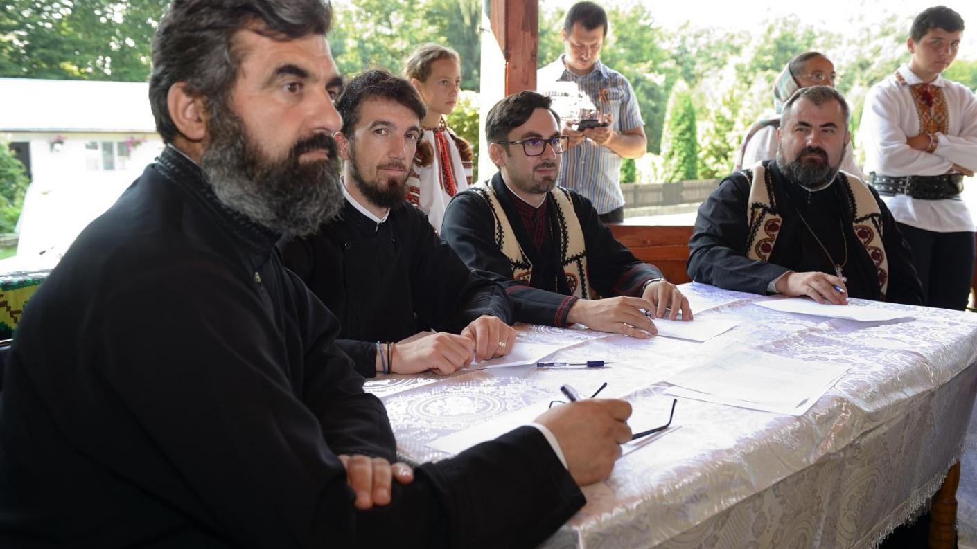 Întâlnirea a debutat cu Sfânta Liturghie oficiată de un sobor de preoți sub protia părintelui inspector Daniel Ionel Marari, delegatul IPS Părinte Arhiepiscop Ioachim pentru această manifestare deosebită care are loc la inițiativa părintelui Ioan Bârgăoanu, protopop de Onești, și cu implicarea specială a preacuviosului părinte protosinghel Claudiu Panțiru, egumenul Schitului, dar și a părintelui Cristian Mazilu de la parohia „Schimbarea la Față” din Poieni, Târgu-Ocna.