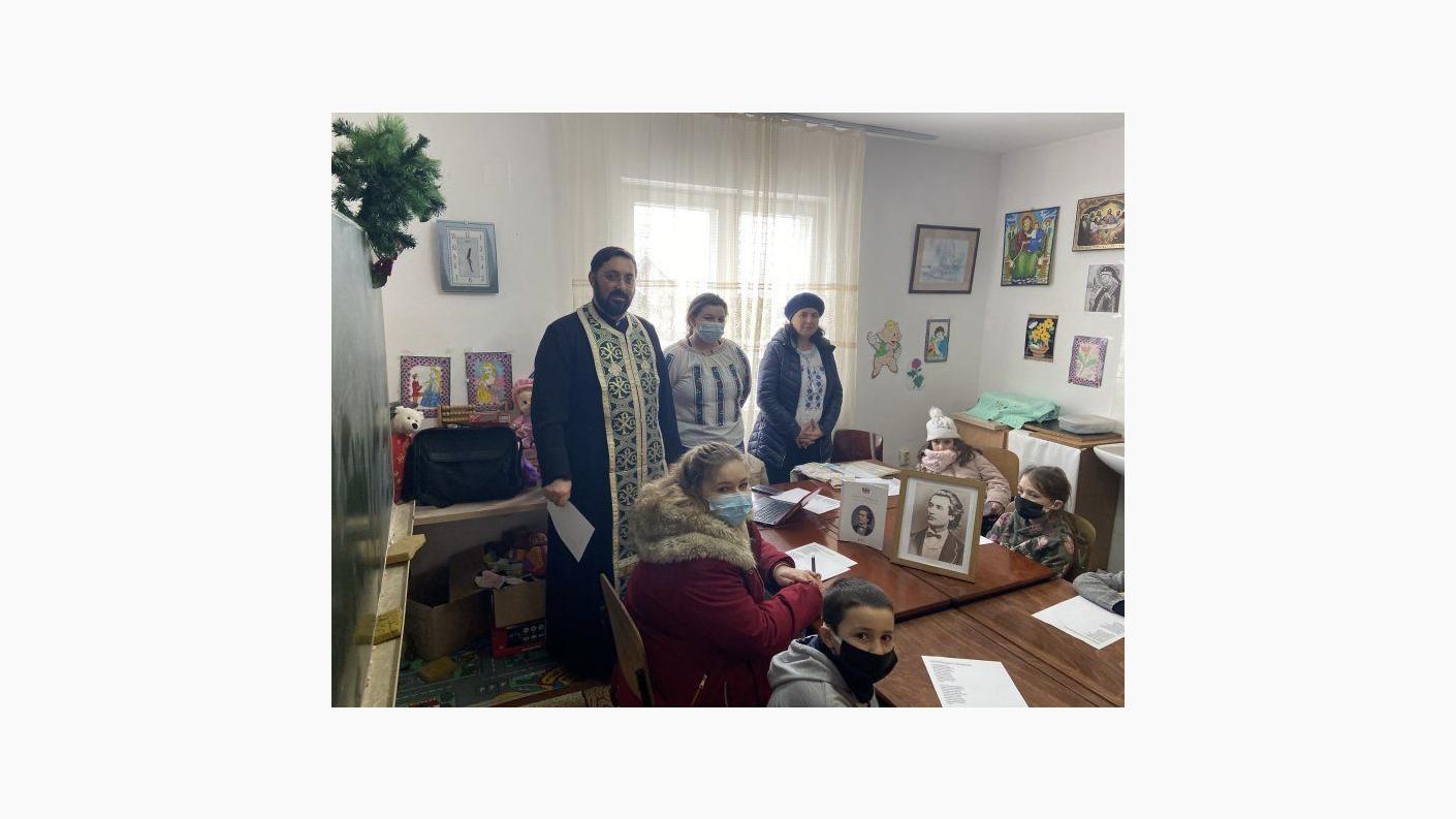 Ziua Culturii Naționale şi ziua ,,poetului nepereche” au fost, astfel, motive de sărbătoare pentru cei mici, căci, au aflat mai multe date biografice din viața lui Mihai Eminescu, prin glasurile tinerilor seminarişti Crăciun Robert şi Covrig Beatrice, au ascultat poezii recitate de elevii Crețu Denis, Vasilaşi Georgiana, Crețu Denisa, Gȃscă Roxana, Lepădatu Lavinia şi Crețu Tomazo. Împreună cu cei 25 de copii care au fost prezenți la activitate, s-a făcut, apoi, şi o slujbă de pomenire a poetului, pentru ca, la final, să primească fiecare copil cȃte un pachețel, o felie de pizza, suc şi dulciri, oferite prin generozitatea unor oameni cu suflet bun.