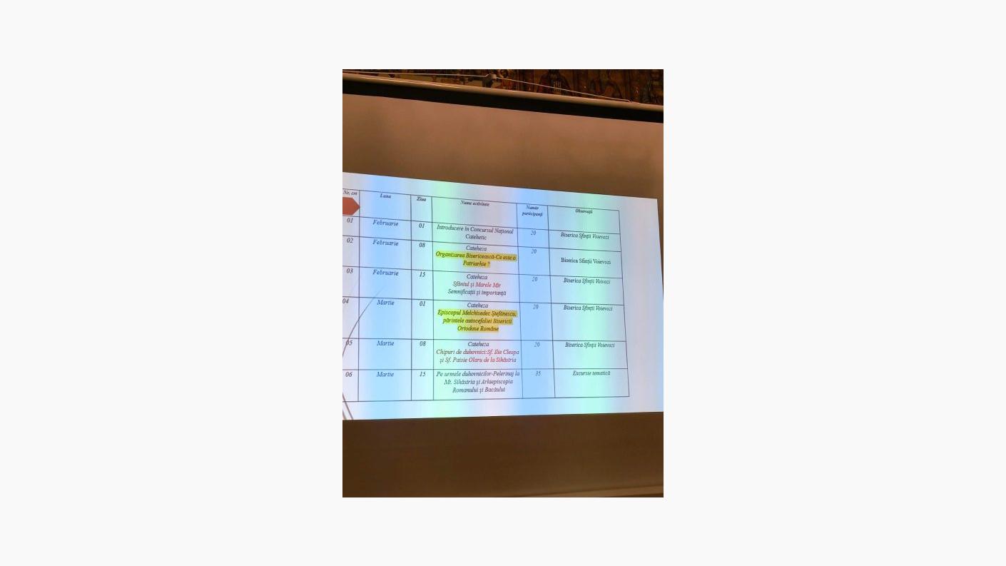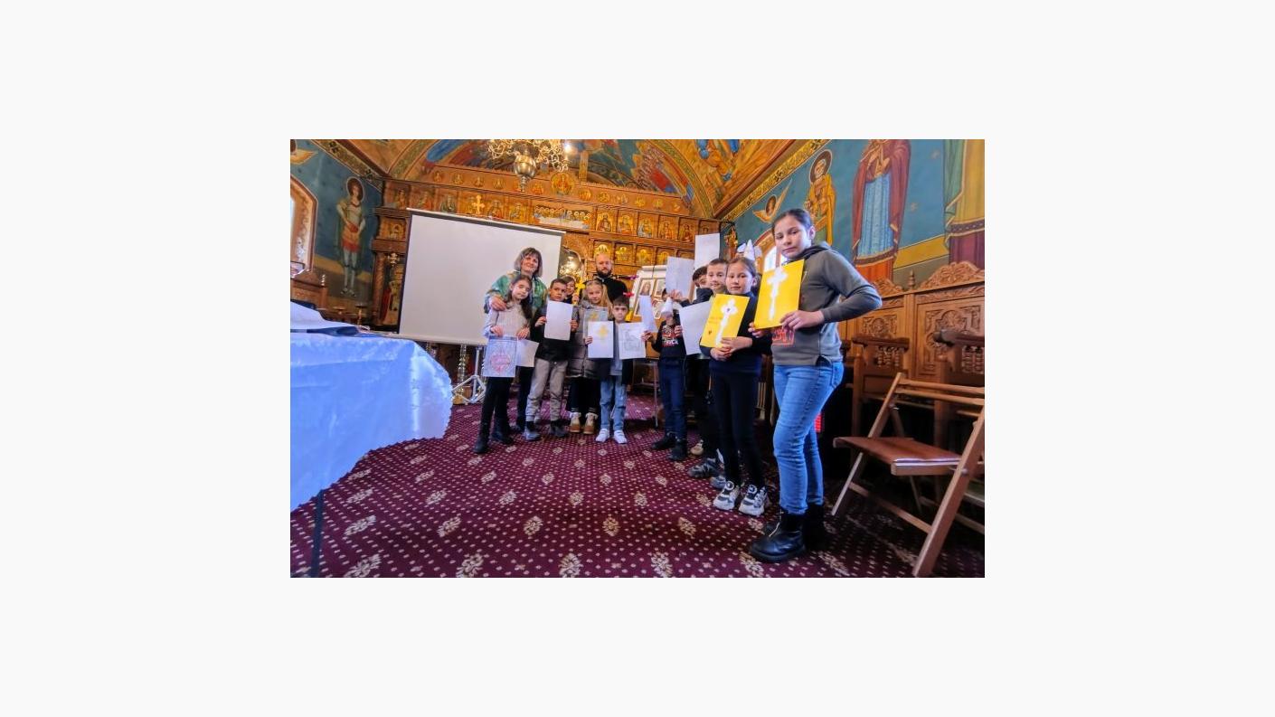 Au fost prezentate pe scurt temele catehezelor ce vor fi susținute în întălnirile următoare, iar în a doua parte a activității copiii au făcut cunoștință cu modelul „Crucii Patriarhale” pe care au încercat să o reproducă cât mai fidel.