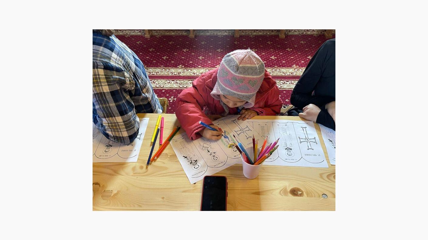 Pentru copiii mai mici, părintele a pregătit icoane de colorat cu cei trei ierarhi care sub ocrotirea doamnei preotese și a profesorului lor de Religie Ortodoxă au prins contur, cei mici înțelegând după putința lor importanța lucrului frumos și cinstirea pe care trebuie să o acordăm momentului rugăciunii și zugrăvirii icoanelor.