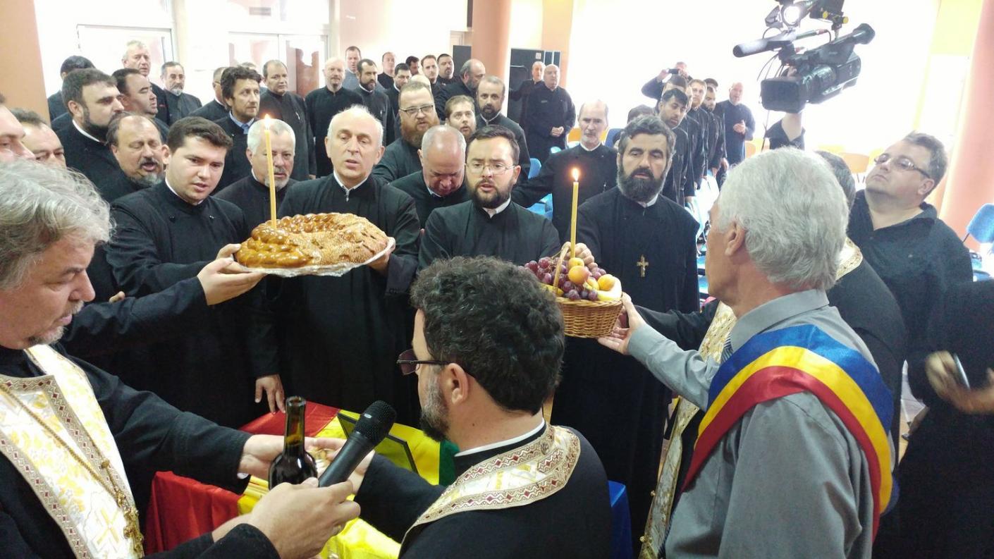 Evenimentul a fost precedat de o slujbă de pomenire a vrednicului de pomenire patriarh Justinian Marina și a eroilor români căzuți pe toate câmpurile de luptă pentru apărarea patriei și a credinței strămoșești. A urmat cuvântul preotului protopop Ioan Bârgăoanu, care a mulțumit delegatului Preafericitului Părinte Patriarh Daniel pentru participarea la acest moment deosebit. Apoi, mesajul de bun venit și binecuvântare al Înaltpreasfințitului Părinte Arhiepiscop Ioachim, a fost rostit de preotul Valentin Băltoi, consilier cultural al Centrului eparhial de la Roman.
