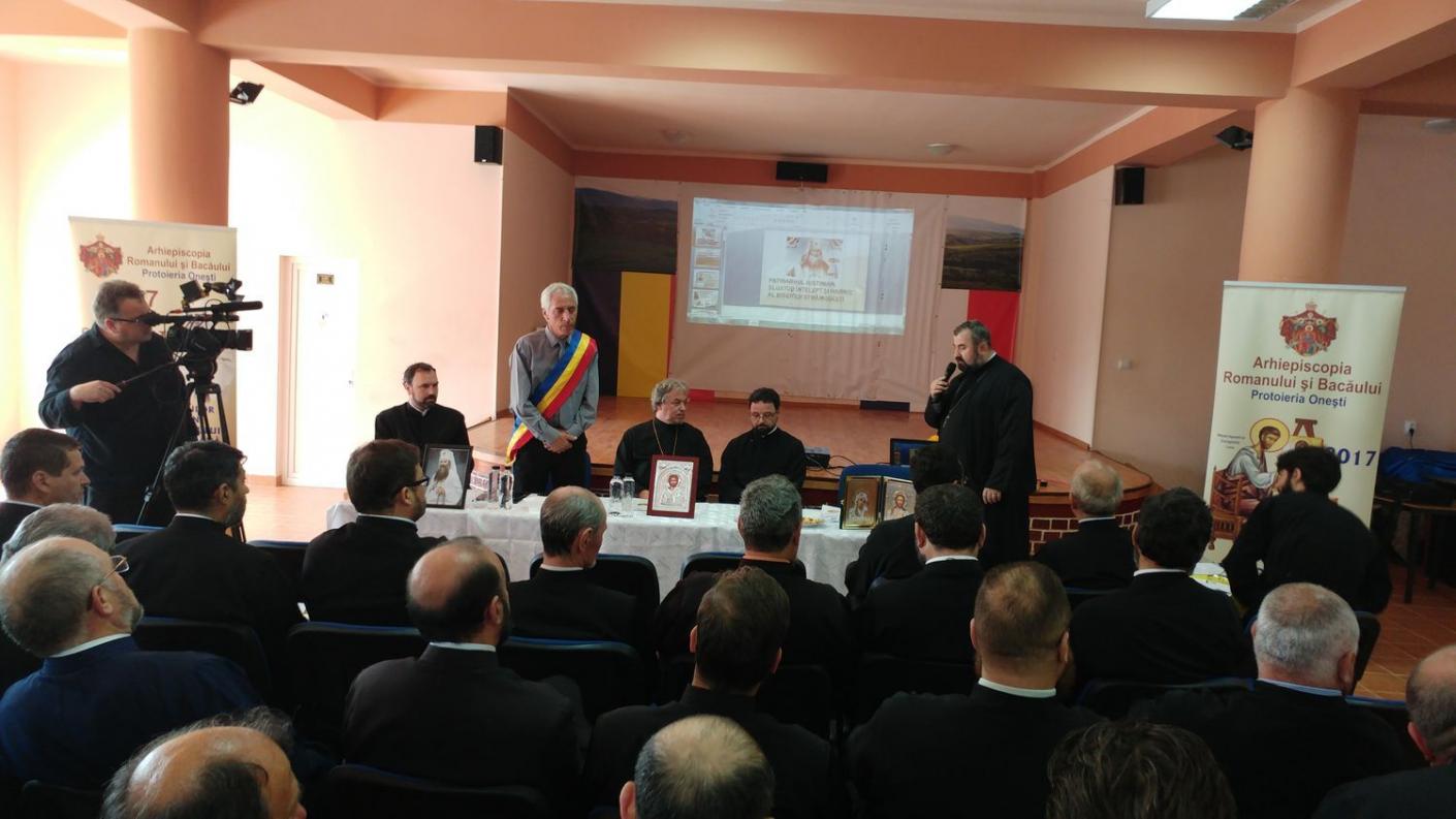 Conferința propriu zisă, ”Patriarhul Justinian, slujitor înțelept și harnic al Bisericii strămoșești”, a adus în atenția celor prezenți personalitatea patriarhului Justinian, de la a cărui trecere în veșnicie s-au împlinit anul acesta patru decenii. ”Personalitatea patriarhului Justinian este pilduitoare pentru că, văzându-i activitatea și lucrarea pastoral-misionară, culturală, filantropică, înțelegem că Biserica lui Hristos își împlinește datoria și în vremuri cu soare și în vremuri de furtună. Încercările din timpul comunismului au fost pentru Biserică și arhipăstorii ei, dar și pentru ceilalți membri, o perioadă de încercare, dar și de purtare a crucii întru lumina Învierii Mântuitorului nostru Iisus Hristos. Patriarhul Iustinian, cu mila dăruită lui de Dumnezeu, a știut să poarte ”Corabia mântuirii”, Biserica, peste toate valurile învolburate ale viețuirii de aici, de pe pământ. Astfel, viața și activitatea sa sunt o reflectare asupra istoriei noastre recente, asupra mărturisitorilor din timpul comunismului, fie din demnitățile înalte ale Bisericii, prin lupta lor pentru apărarea Ortodoxiei și, de asemenea, prin jertfele tuturor mădularelor Bisericii din acea perioadă. Viața sa este un îndemn la a înțelege mai bine demnitatea preoțească în societate de azi și de a urma sfaturile și îndemnurile pastorale ale arhipăstorilor noștri duhovnicești. Lumina care se dăruiește nouă prin moștenirea înaintașilor trebuie cultivată și înmulțită”, a declarat, printre altele, părintele consilier patriarhal, care, la finalul cuvântului său, a apreciat dinamismul activităților social-filantropice și pastoral-misionare pe care preoții din Protopopiatul Onești le derulează cu binecuvântarea arhipăstorului Ioachim.