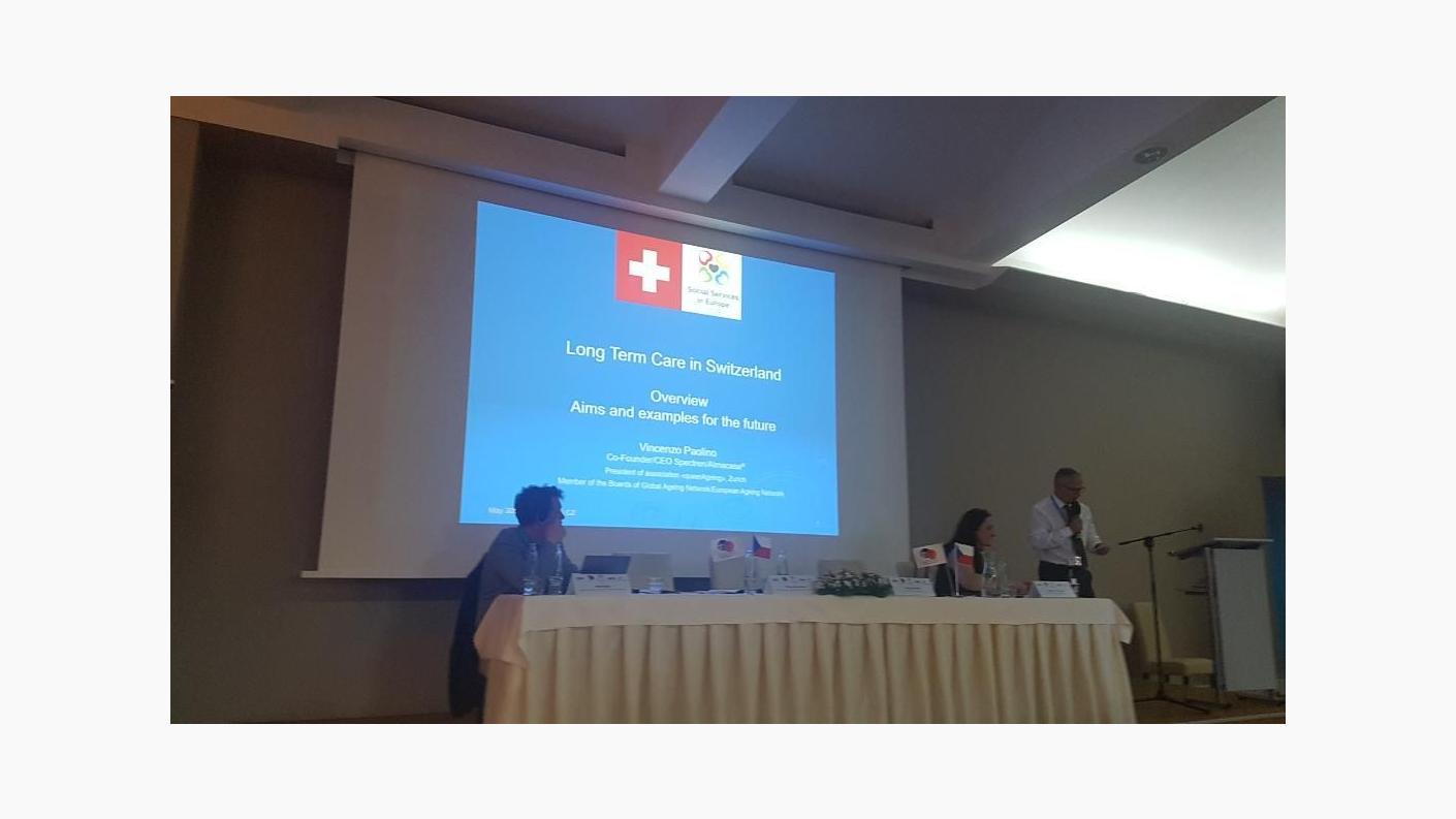 Celelalte prezentari au fost: Social rights in long term care in European care homes [Drepturile sociale în îngrijirea pe termen lung în centrele de îngrijire din Europa] - Timea Czikos (Ungaria – Jurist Supervizor în cadrul Departamentului național pentru drepturile omului); Residential Elderly care in Slovenia [Îngrijirea vârstnicilor rezidenți din Slovenia] - Jaka Bizjak (Secretar General al Asociației Instituțiilor Sociale din Slovenia); Long-term Care in Switzerland [Îngrijirea de lungă durată în Elveția] - Vincenzo Paolino (Membru în Comitetul de conducere al Rețelei europene a directorilor și furnizorilor de îngrijire pe termen lung); Long term Care in European countries [Îngrijirea pe termen lung în țările europene] - Ladislav Průša (Profesor la Institutul de cercetare pentru Ministerul Muncii și a Drepturilor Sociale din Cehia); Social services in Catalonia [Serviciile sociale din Catalonia, Spania] - Montserrat Llopis (Director General al ACRA – Catalonia, Spania); European social policies [Politicile sociale europene] - Petra Zimmelová (Asistent universitar la Universitatea Boemia de Sud din Republica Cehă).
