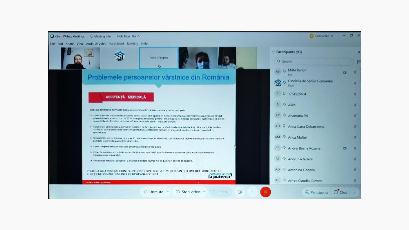 Evenimentul on-line a fost organizat de Fundația de Sprijin Comunitar și a dezbătut teme legate de îngrjirea și asistența socio-medicală a persoanei vârstnice.
