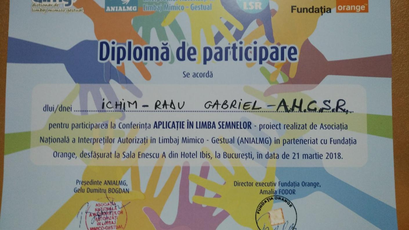 În data de 21 martie 2018, în sala de conferințe Enescu a hotelului Ibis din București a avut loc Proiectul „Aplicație în limba semnelor", acesta fiind menit sa ușureze accesibilitatea tuturor de a învață mai ușor limbajul semnelor, fiind destinat persoanelor hipoacuzice din România.