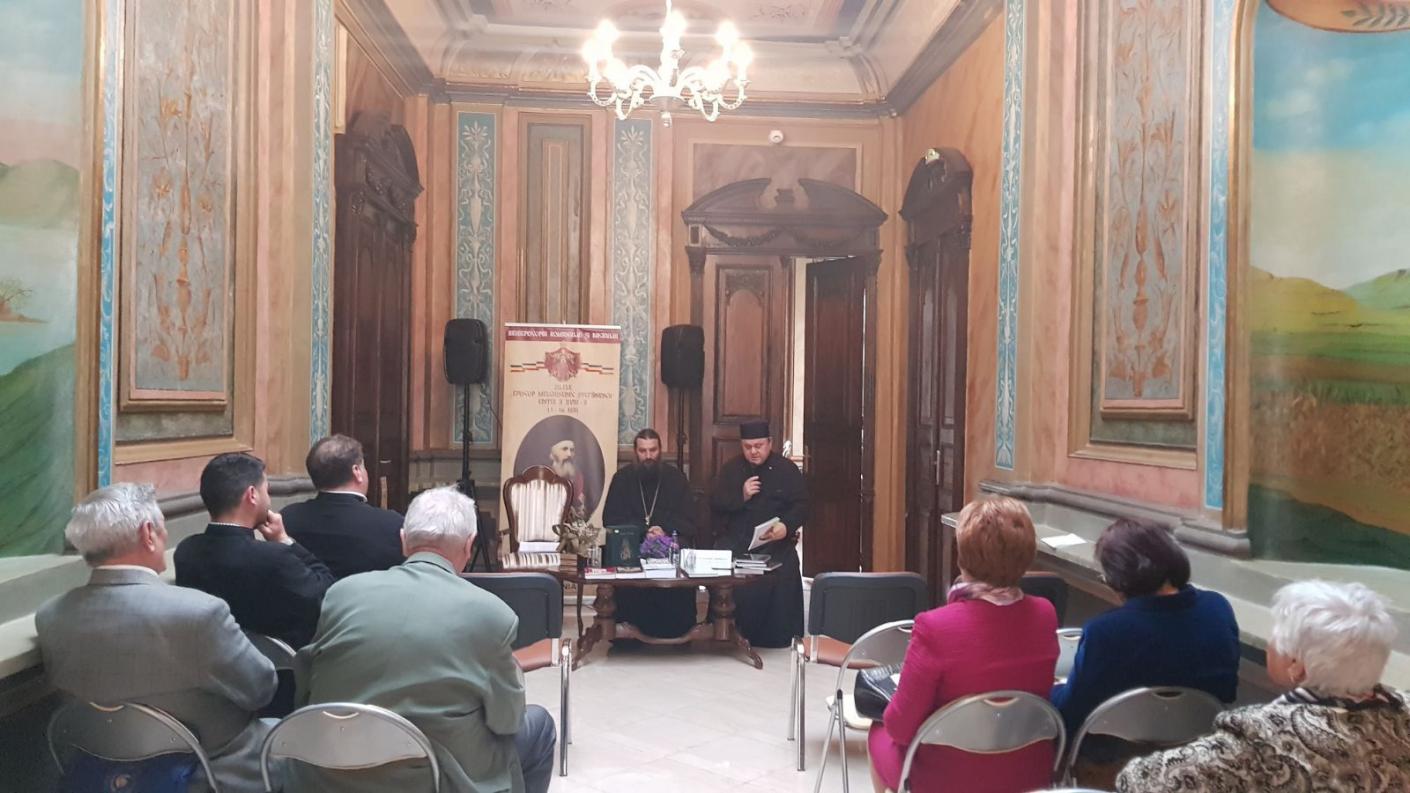 În prima parte a întâlnirii a avut loc susținerea conferinței „Melchisedec Ștefănescu, promotor al unității de credință și de neam” de către Preacuviosul Părinte arhimandrit Pimen Costea, vicar eparhial, care a vorbit despre identitatea creștină și de neam, despre păstrarea personalității duhovnicești a omului contemporan și despre o posibilă recunoaștere a sfințeniei celui care a fost Episcopul Melchisedec.