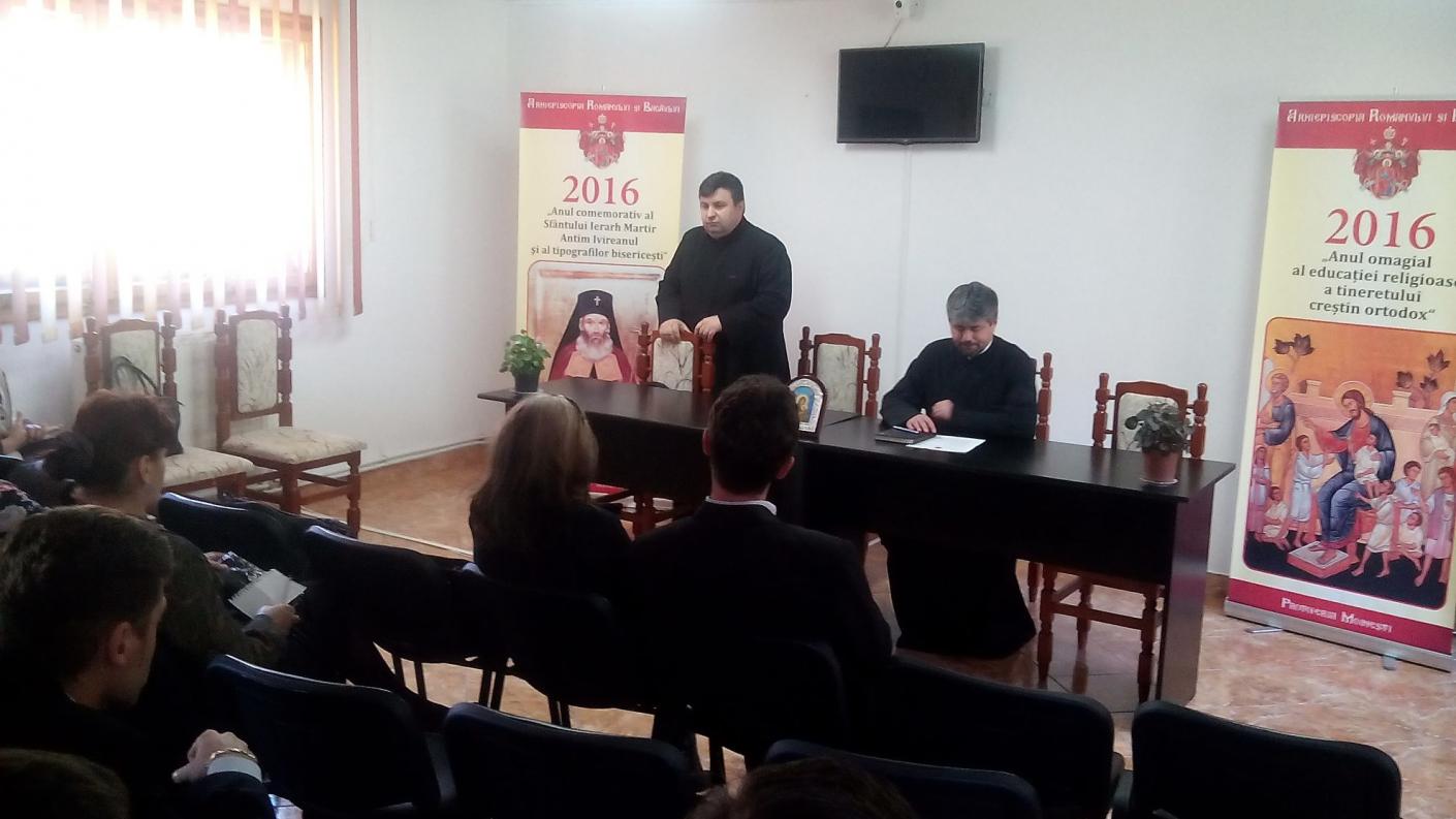 Întâlnirea a fost condusă de părintele protoiereu Costel Mareș invitat fiind părintele Ionuț Căsăneanu, inspector de specialitatea Religie în cadrul Inspectoratului Școlar Județean Bacău.