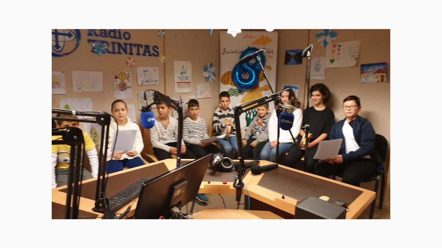 Împreună cu părintele Ilarion Mâță am ajuns, după o lungă călătorie, la orele de vârf ale Bucureștiului, la studioul Radio Trinitas, unde am fost întâmpinați cu un zâmbet călduros de către Adriana Ene, renumita realizatoare a emisiunii pentru copii. După ce am deschis emisiunea cu un colind, ne-am prezentat, descriind-ne pe noi înșine și pe ceilalți, demonstrând cât de bine ne cunoaștem.