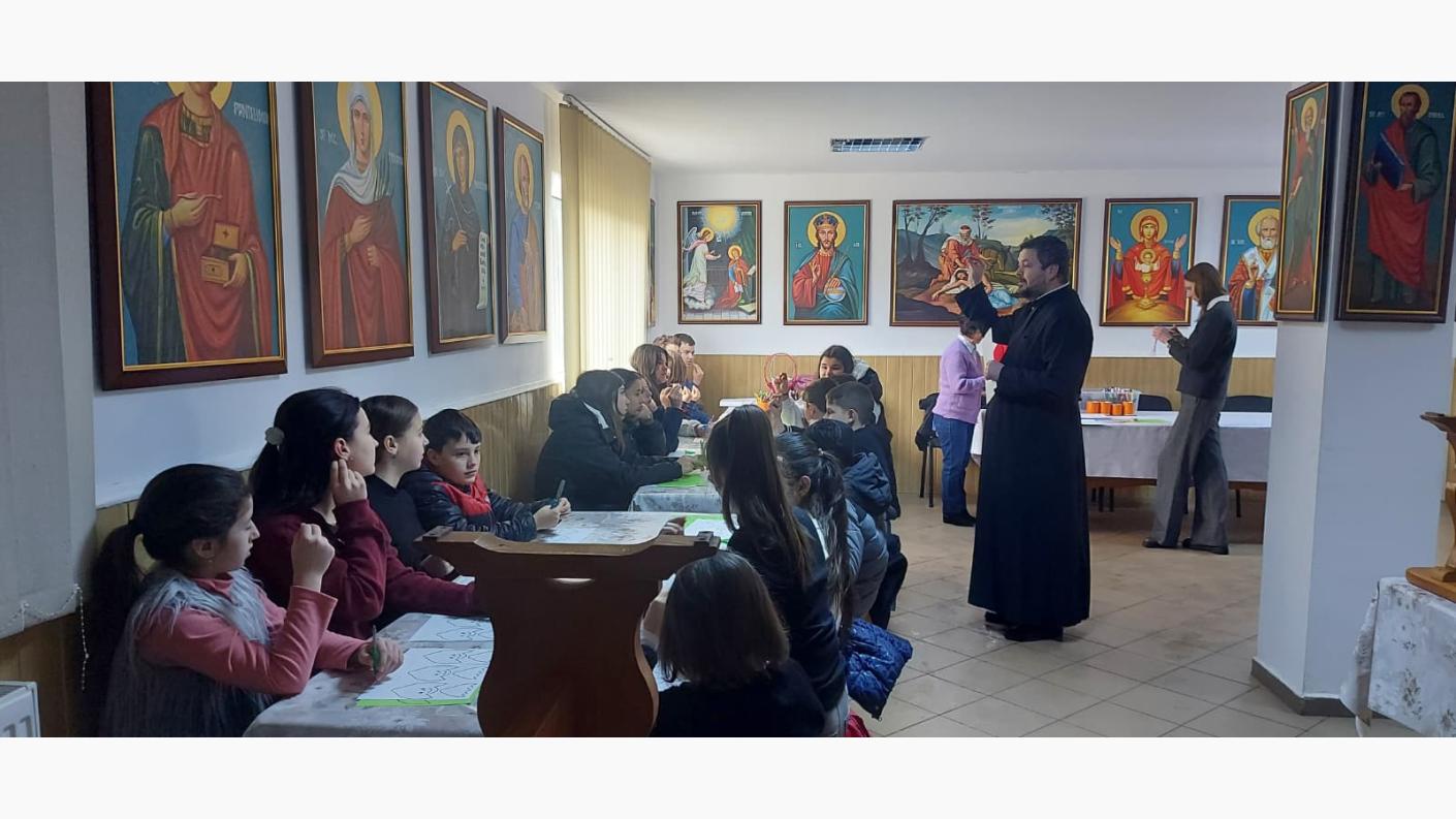Un grup de 20 de copii, însoțiți de cadrele didactice Mihai Bucătaru, Maria Găbureanu, Nicoleta Rață și Vica Năstase, împreună cu părintele paroh Dorel Pavăl, s-au adunat în centrul social-filantropic al parohiei, unde s-a desfășurat prima cateheză a Concursului Național Catehetic, având ca temă "Familia și creșterea copiilor în credința în Dumnezeu", urmată de un atelier de confecționat mărțișoare.