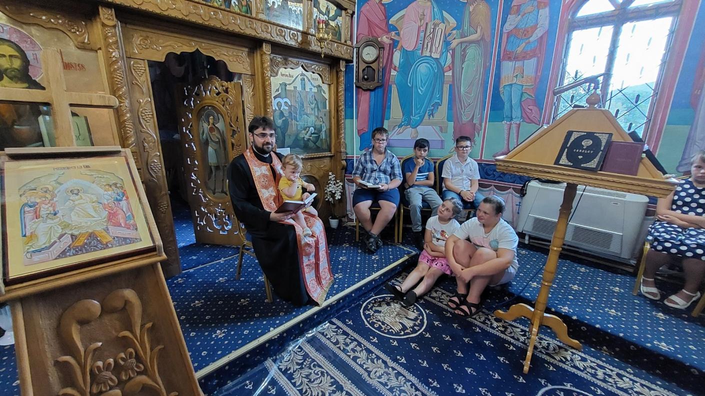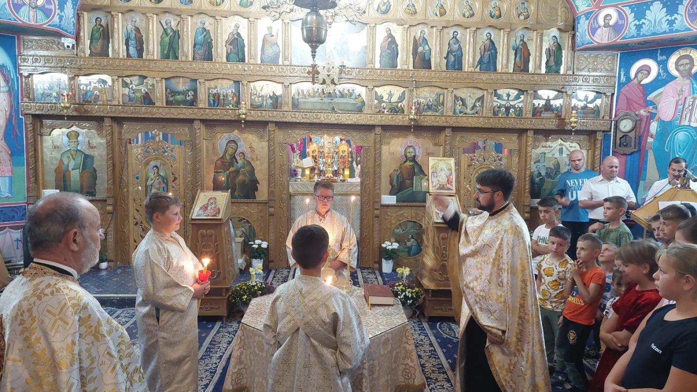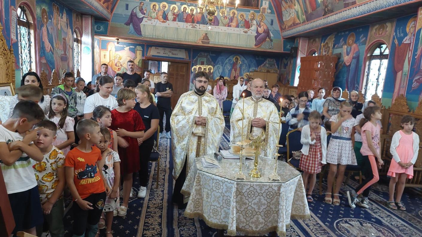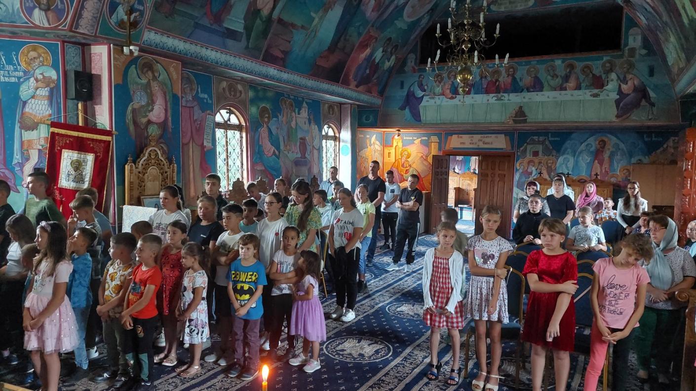 „Ca în fiecare an, și anul acesta evenimentele au debutat cu deja obișnuitul program „40 de seri în rugăciune”. Așa se face că începând cu data de 17 iunie până pe data de 9 august, în fiecare seară, de luni până vineri, ne-am rugat împreună citind câte o catismă din psaltire, paraclisul Maicii Domnului, ectenii și rugăciuni pentru diferite trebuințe, iar la finalul serii a fost susținută câte o cateheză pe seama unui capitol din Sfânta Scriptură. Sigur, nu au lipsit nici întrebările raportate la cele descoperite sau în legătură cu alte frământări și probleme pe care le-au avut copiii, la care am fost provocați să dăm răspuns. Cu acest prilej am remarcat schimbările în bine a copiilor, în ce privesc atitudinea față de cele sfinte, răbdarea și așezarea la rugăciune, comportamentul față de cei din jur, atenția și interesul de a descoperi lucruri noi în fiecare seară. De asemenea, acestor întâlniri li se datorează și prezența copiilor în număr mare la Sfânta Liturghie unde, împreună cu doamna preoteasă, în jurul căreia se simt protejați, participă activ, cum de altfel se întâmplă și în cele 40 de seri în rugăciune, rostind rugăciuni și dând răspunsurile din cântările la strană. Acest program se adresează atât adulților cât și copiilor.” a relatat părintele paroh Irinel Călin.