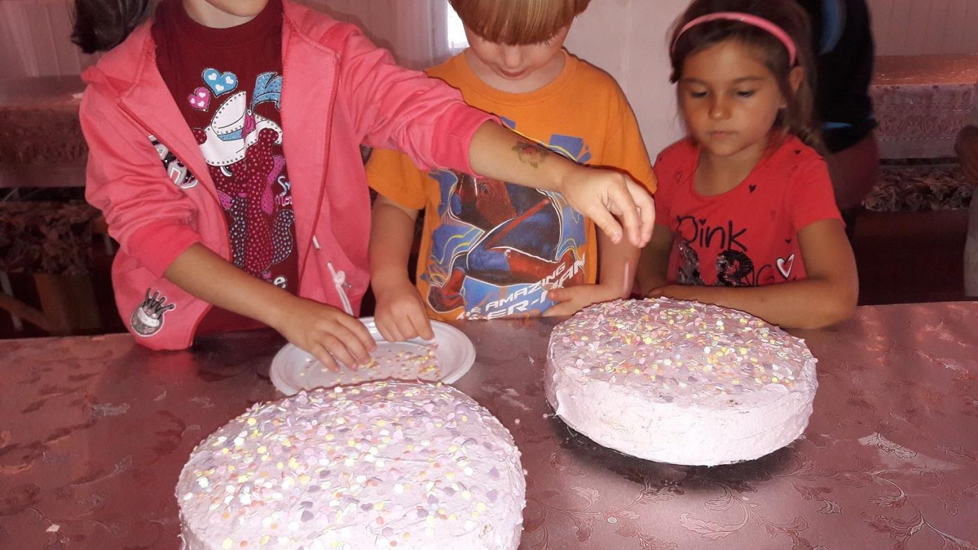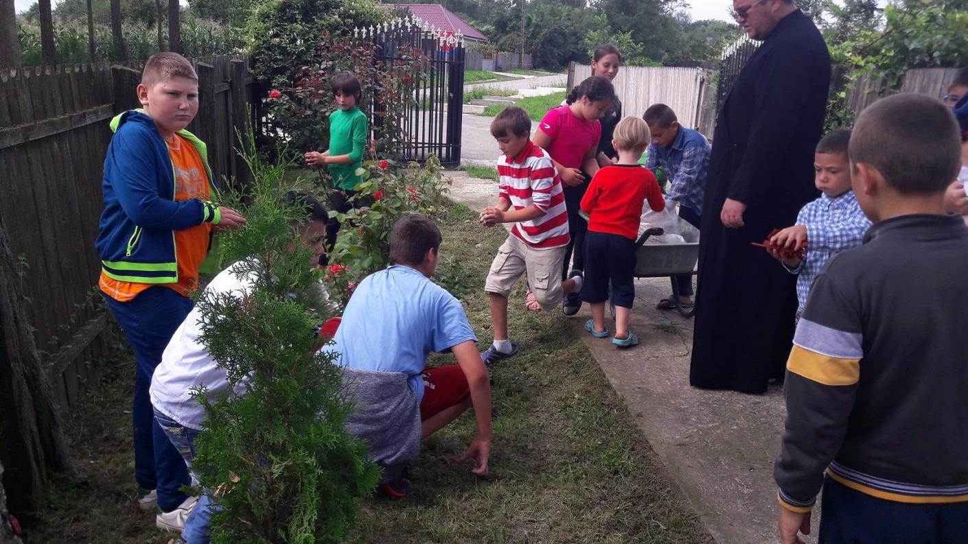 În plus, copiii au demonstrat ca sunt deja buni gospodari: băieții au amenajat florile de pe aleea de acces la biserică, eforturile lor fiind răsplătite de fetițele care le-au pregătit tort.
