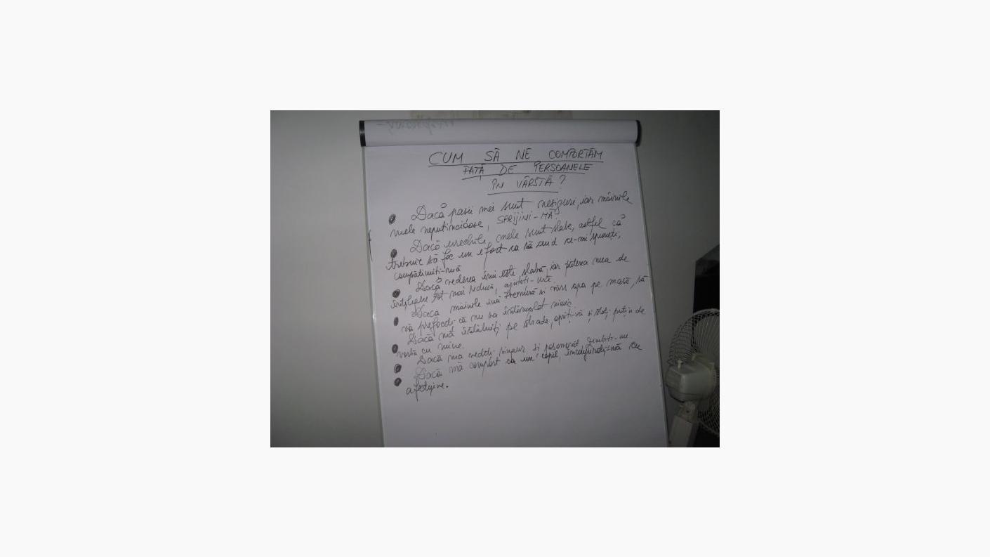 Copiii au primit sfaturi despre: alimentația sănătoasă, igiena personală, precum și reguli de bune maniere acasă, în familie, în societate, la școală, în vizită și în mijloace de transport în comun.