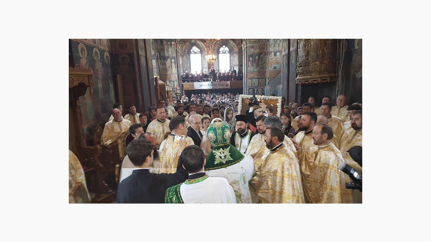 Credincioșii băcăuani au participat la Sfânta Liturghie oficiată de Înaltpreasfințitul Părinte Arhiepiscop Ioachim, alături de care s-au aflat părintele arhimandrit Pimen Costea, vicar administrativ al Arhiepiscopiei Romanului și Bacăului, părinții protopopi ai celor 6 protopopiate de pe cuprinsul eparhiei Romanului și Bacăului, reprezentanți ai autorităților locale și centrale și preoți profesori ai Liceului Teologic „Episcop Melchisedec” din Roman. Răspunsurile la strană au fost date de elevii seminariști ai liceului teologic ortodox romașcan, îndrumați de arhid. Vlad Samoilă.
