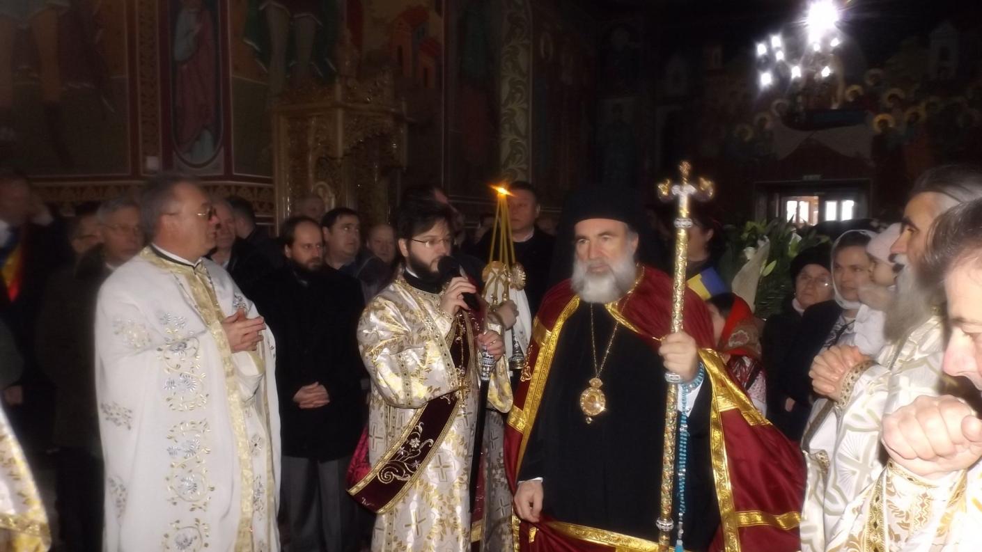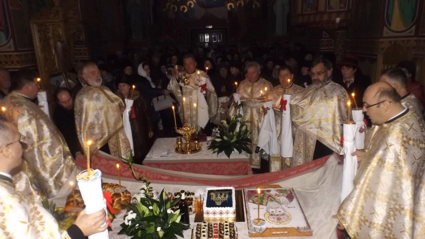 Au fost pomeniți ctitorii Catedralei din pomelnicul sfințirii anului 1947, apoi părintele Protopop a mulțumit preoților și credincioșolor prezenți la această seară de rugăciune, amintind faptul că bucuria duhovnicească va fi deplină în prezența Întâistătătorului Eparhiei noastre, a Înaltpreasfințitului Părinte Arhiepiscop Ioachim.