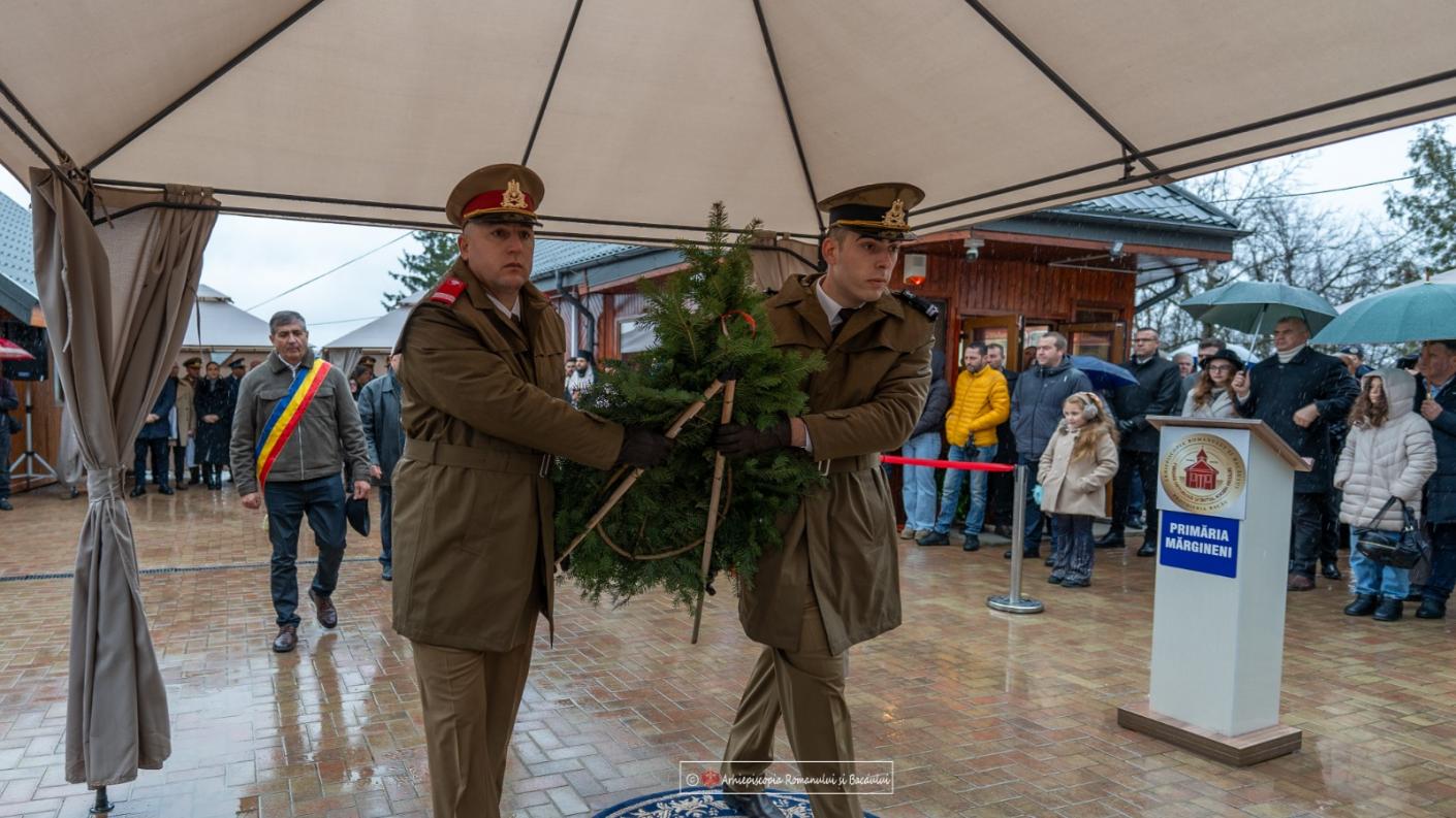 Au urmat alocuțiuni rostite de dl Ioan Gheorgheș, primarul Comunei Mărgineni, dl Benoni Gheorghiță David, viceprimar, doamna Cristina Pravăț Breahnă, președinta Consiliului Județean Bacău, doamna Andreea Negru, prefect al județului Bacău, domnul Dan Voicu, președintele Asociației Naționale Cultul Eroilor „Regina Maria”, Filiala „Col. Corneliu Chirieș” – Bacău, precum și de părintele paroh Andrei Olaru.