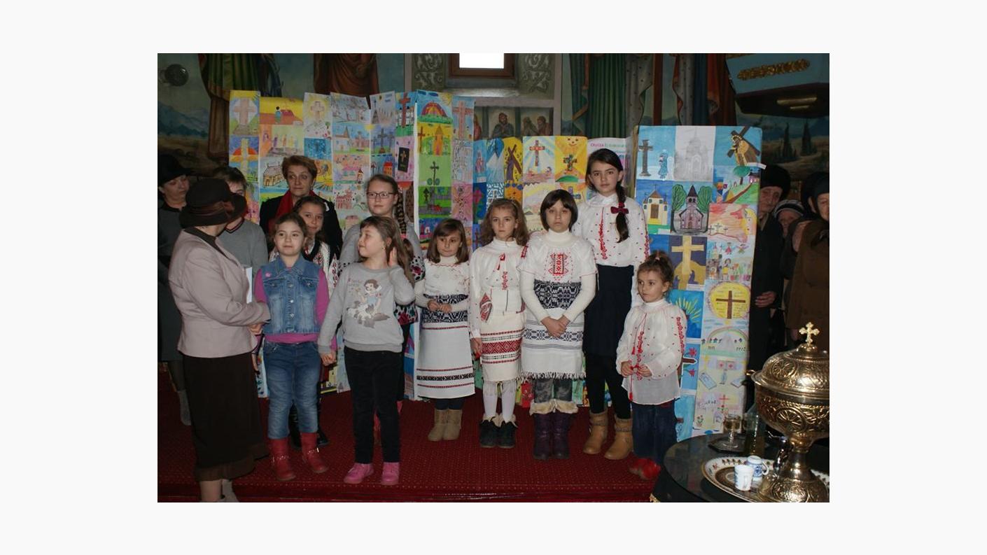 Copiii prezenți, îmbrăcați în costume populare, au rostit rugăciuni închinate sfintei cruci și au cântat troparul „Crucii Tale ne Închinăm Hristoase”, iar la final au fost răsplătiți de preoții slujitori ai bisericii ”Sf. Împărați”, cu dulciuri și iconițe, fiindu-le înmânat și ultimul număr al revistei ”Cronica Romanului”.