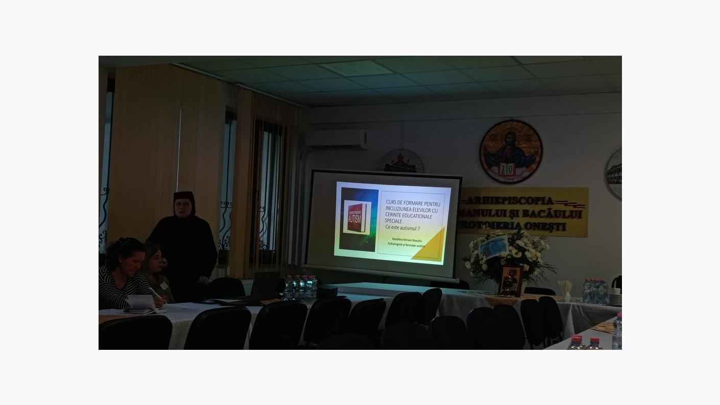 Cursul, la care a luat parte și părintele protoiereu Nicolae Zaharia, a fost susținut de rasofora Miriam Dascălu, psiholingvist și formator în lucrul cu persoanele cu dizabilități, la sediul Protoieriei Oneşti. Tulburările de spectru autist (TSA) au reprezentat principala dizabilitate vizată.