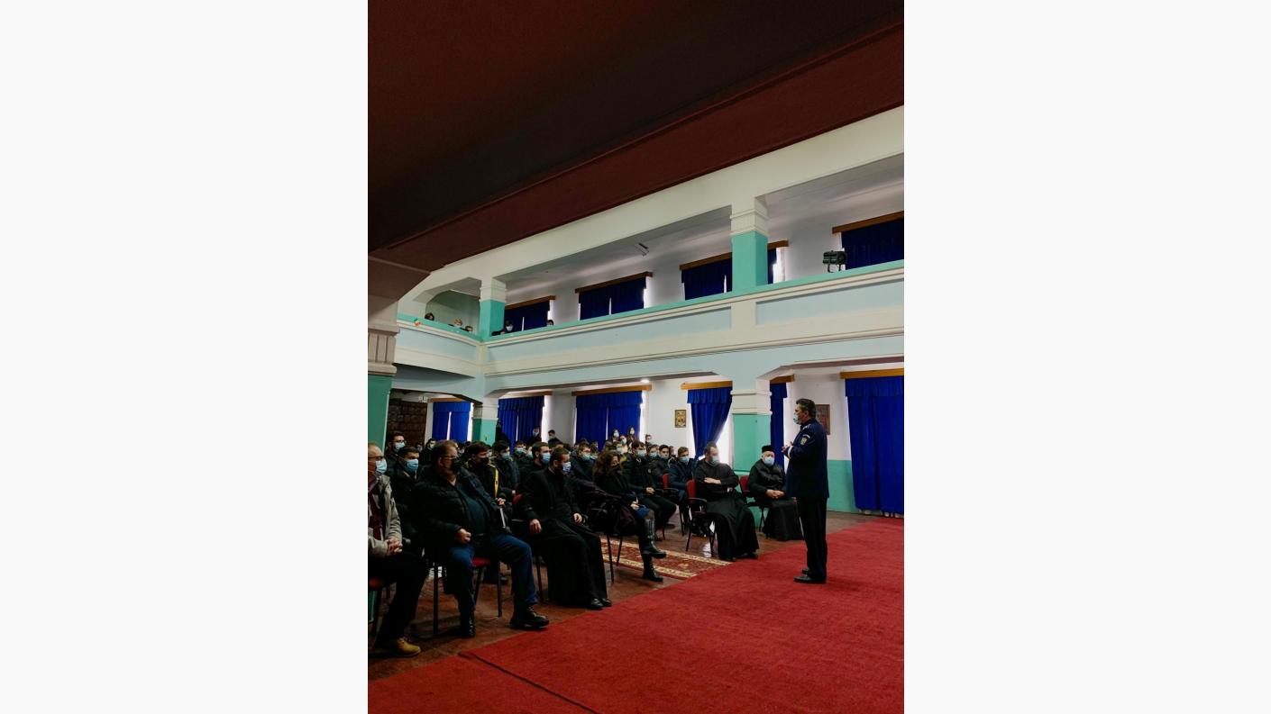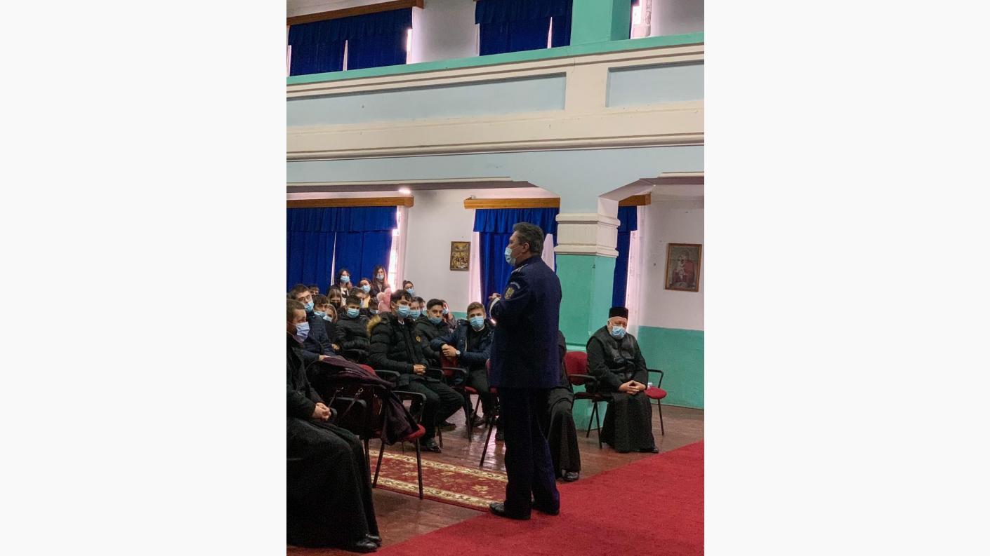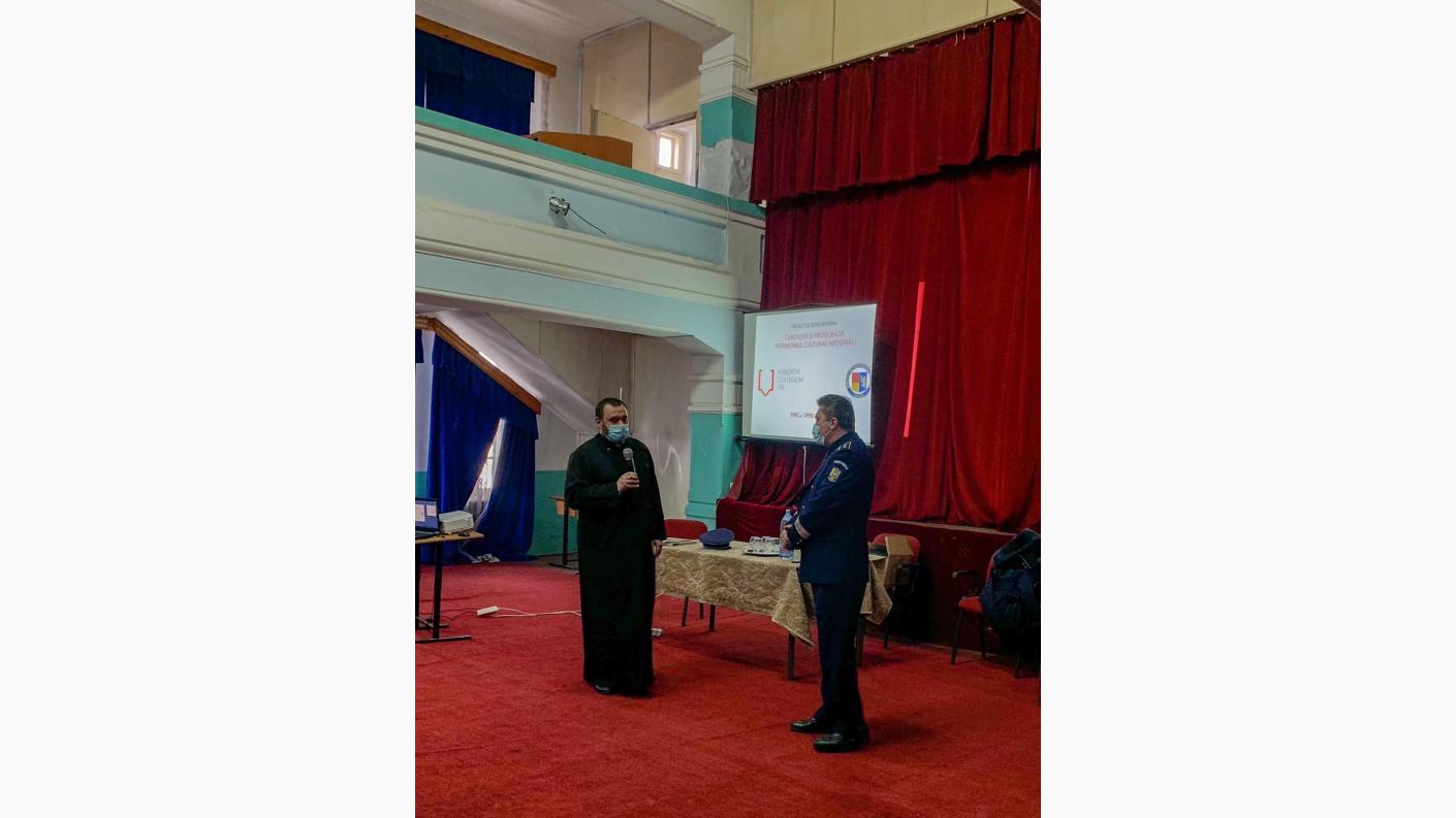 La acțiune a conferențiat dl. Comisar Vitalie Josanu, care a realizat o prezentare a considerentelor axiologice care validează în conștiința colectivă apartenența unor elemente la patrimoniul național, precum și o serie de repere privitoare la importanța Bisericii ca instanță protectoare a celei mai semnificative părți a patrimoniului național. Inter-acționând cu elevii, apelând la memoria afectivă a acestora într-un exercițiu anamnetic iscusit și carismatic, făcând referire la absolvenți ai seminarului romașcan ce constituie exemple de bună-practică în conservarea elementelor de patrimoniu, conferențiarul a fost extrem de apreciat de către tineri, pe care, la sfârșitul activității, i-a premiat cu câte un dar simbolic și o diplomă de participare la proiect. Acțiunile programului „Cunoaște și protejează patrimoniul cultural național”, coordonate de Inspectoratul Județean de Poliție Neamț și Fundația Collegium XXL vizează în anul 2021 un număr de șaisprezece unități de învățământ din județul Neamț.