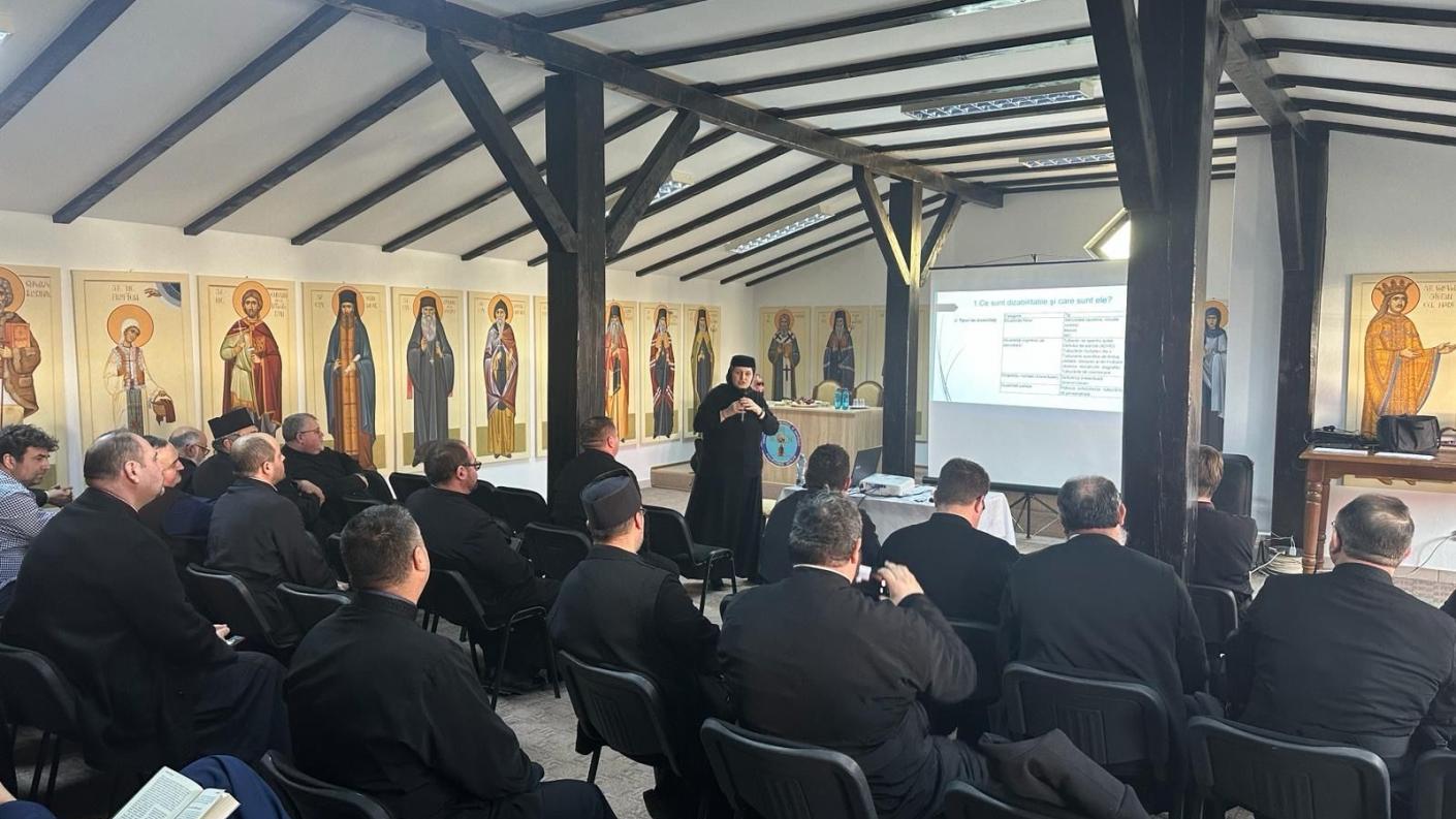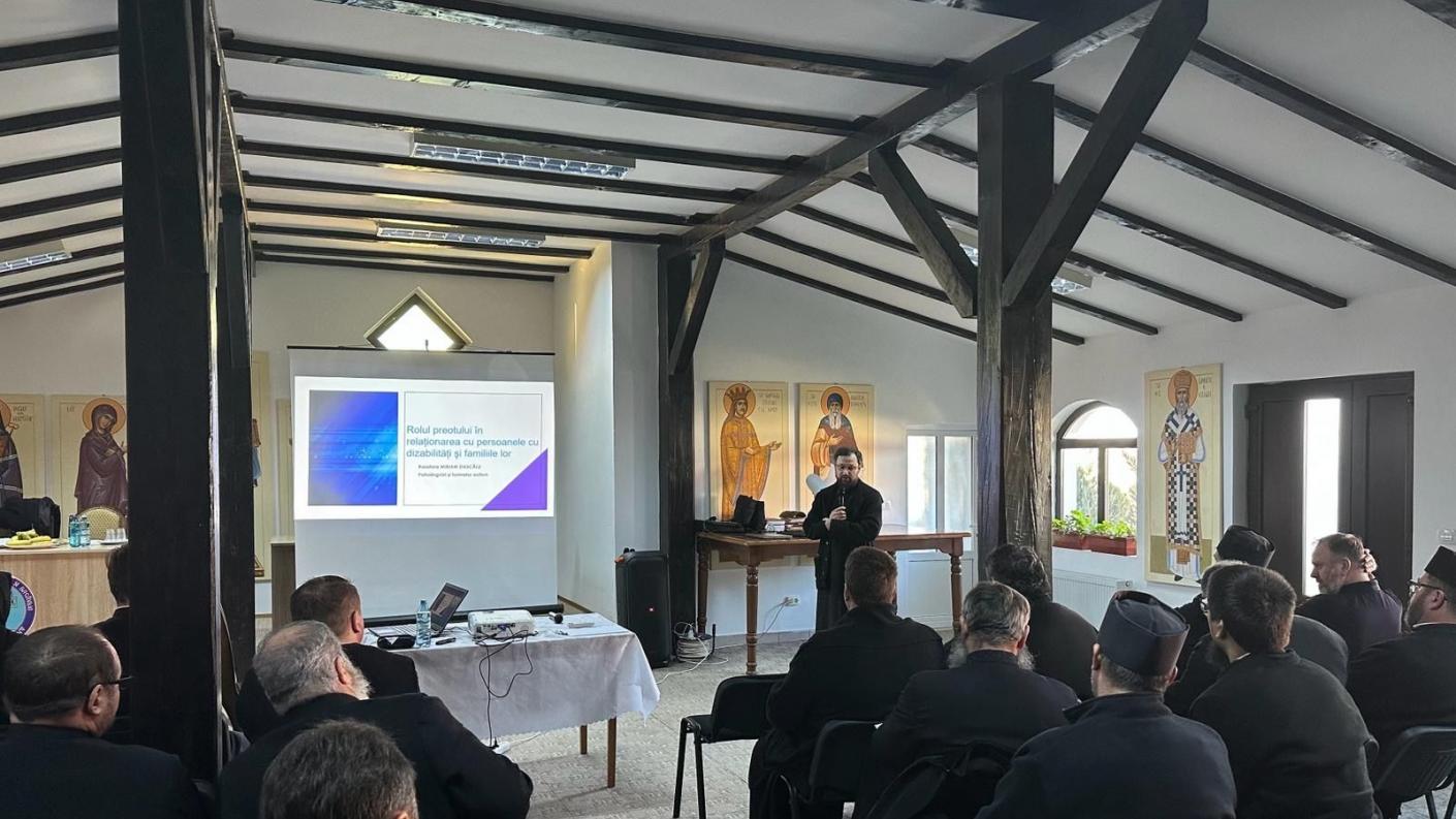 Formatorii primei sesiunii au fost preacucernicul părinte Ilarion Mâță, consilier eparhial la Sectorul social-filantropic al Arhiepiscopiei Romanului și Bacăului și lector universitar în cadrul Facultății de Teologie Ortodoxă din Iași, Specializarea asistență socială și preacuvioasa maică Miriam Dascălu, psiholingvist şi formator pe dizabilităţi și viețuitoare a obștii monahale din cadrul Centrului eparhial Roman.
