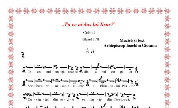 text: Arhiepiscop Ioachim Giosanumuzica: pr. Vlad Roșuinterpreteaza: Corul Diaconia