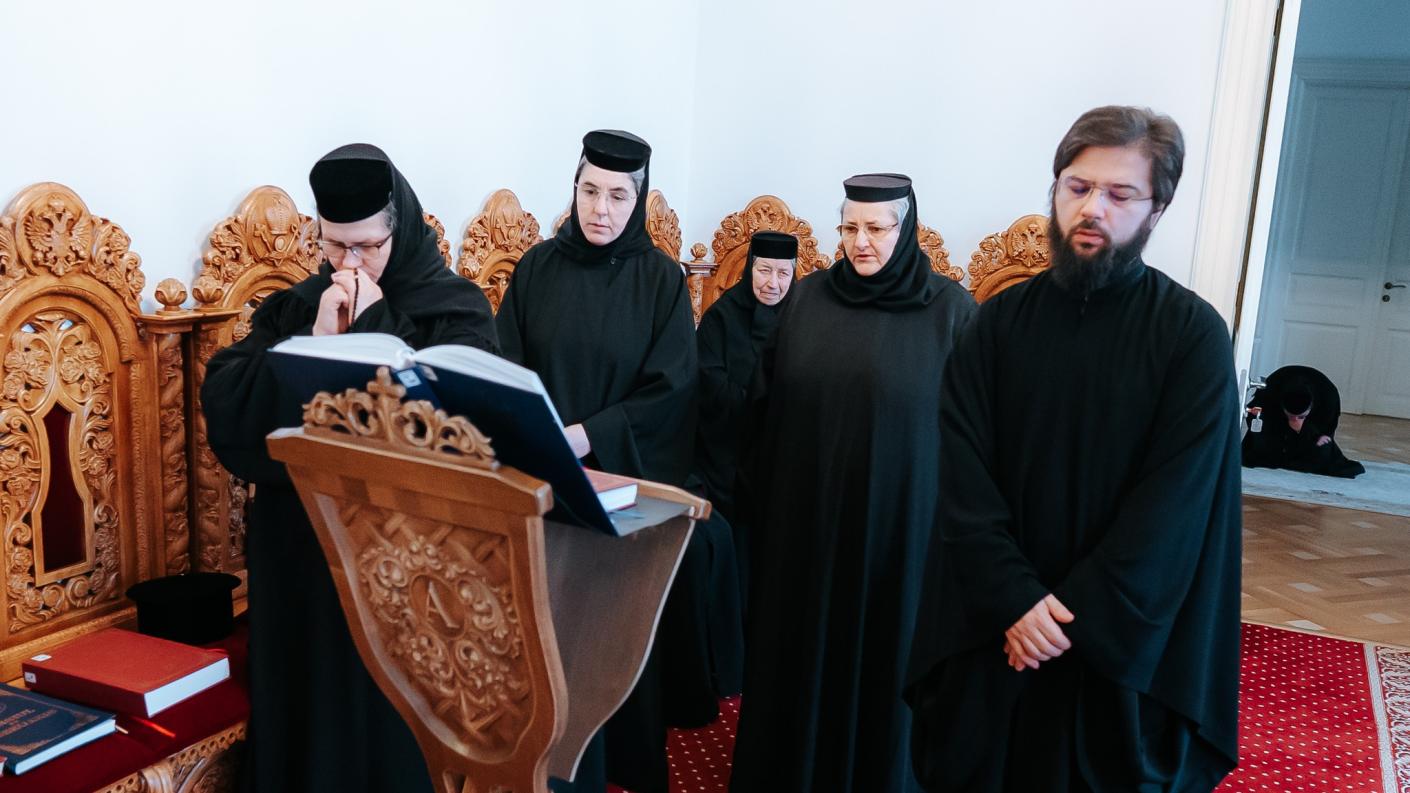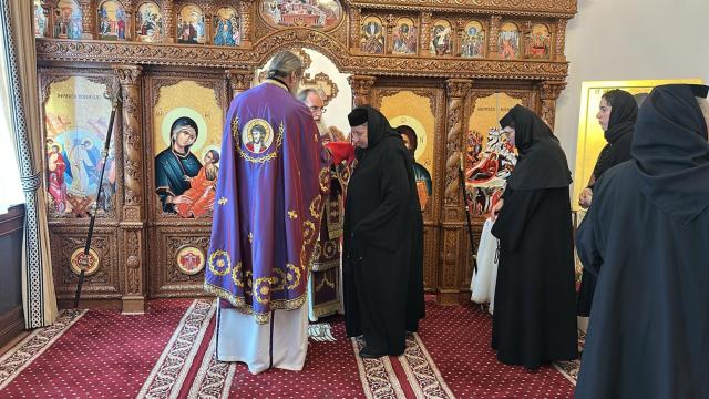 La slujbă au participat monahi și monahii de la Centrul eparhial Roman, care au dat şi răspunsurile la strană.