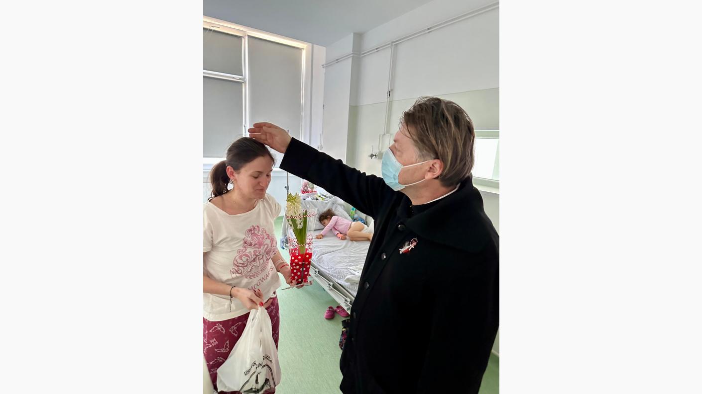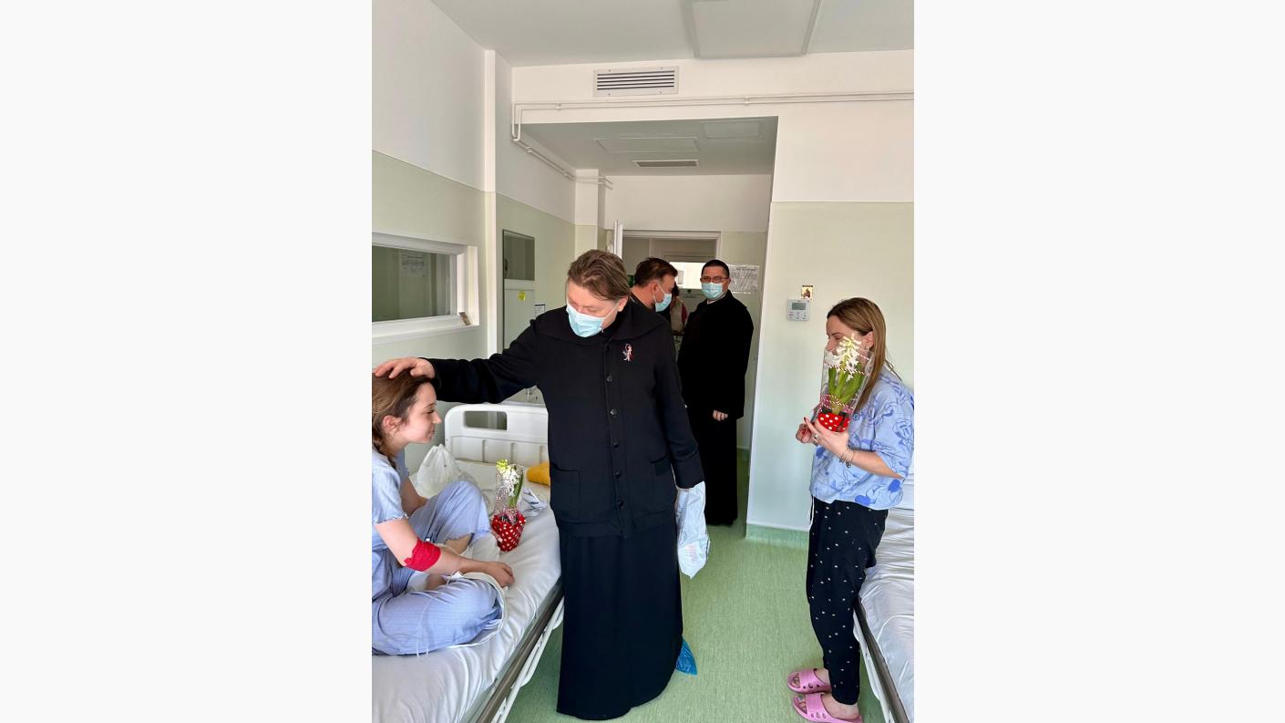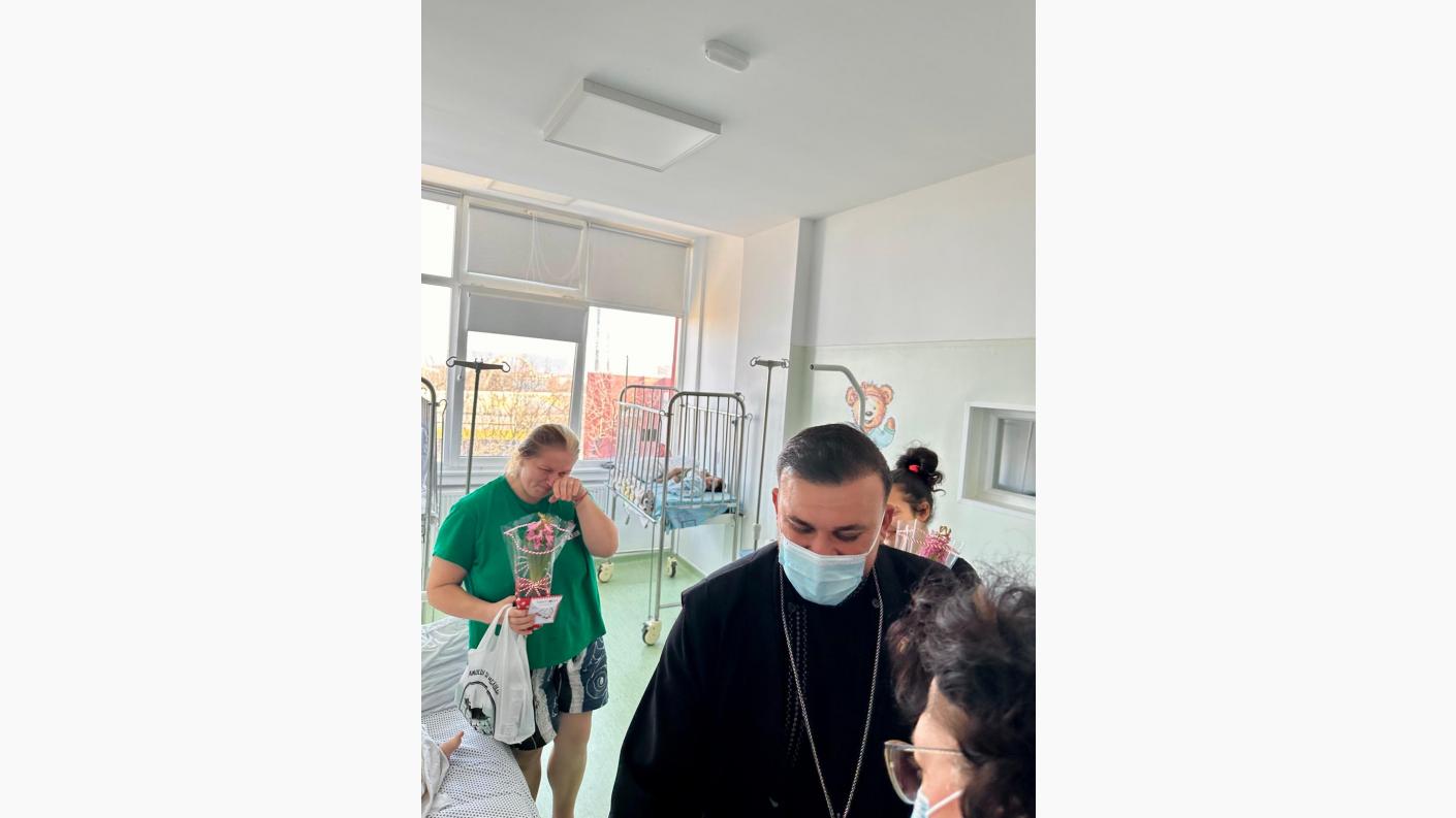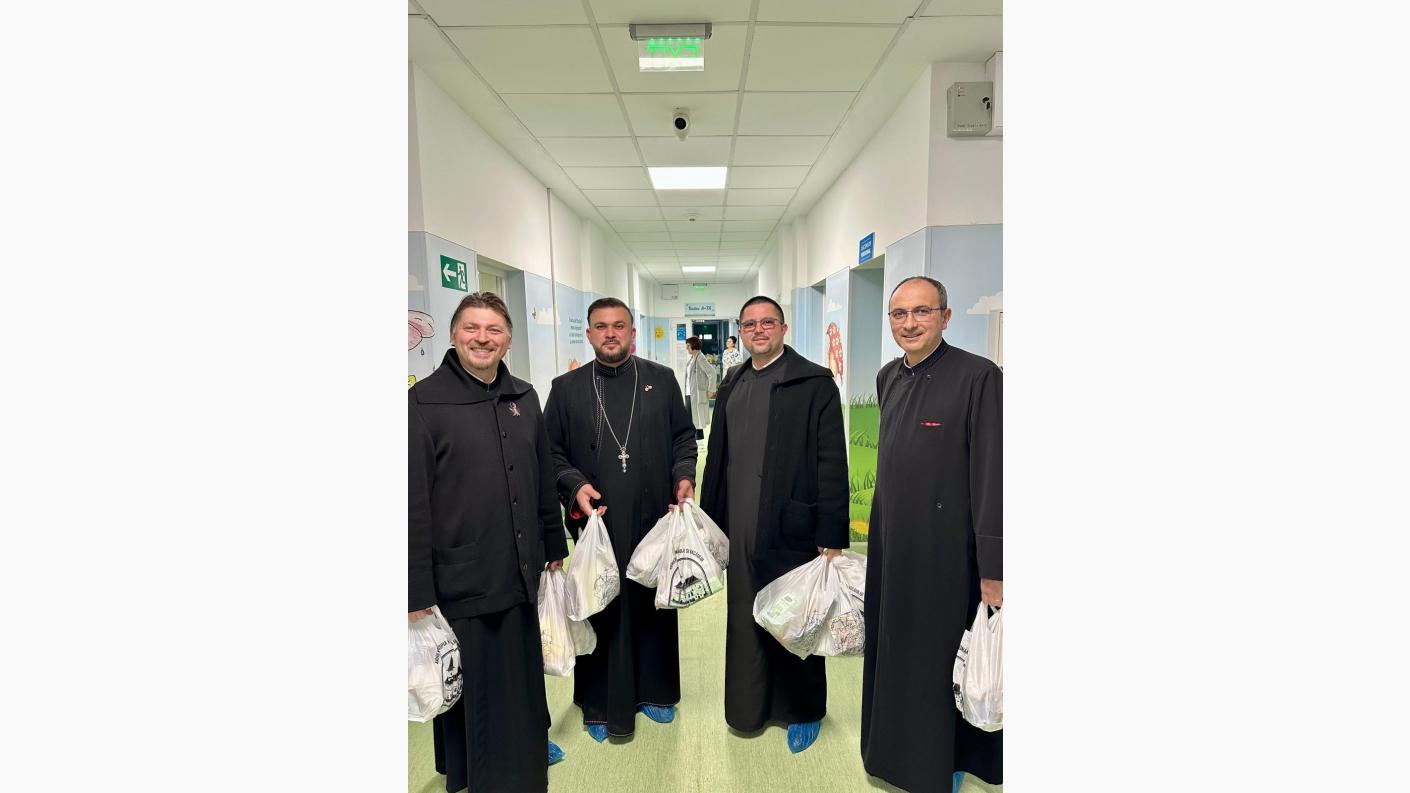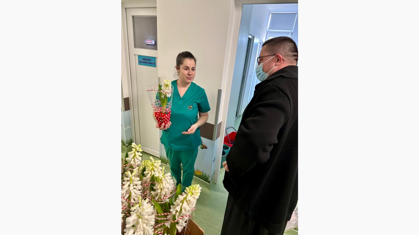 |Cu binecuvântarea Înaltpreasfințitului Părinte Ioachim, preoți din cele două parohii au oferit 20 de pachete cu produse de îngrijire și icoane mamelor aflate alături de copiii lor, precum și flori și mărțișoare pentru toate angajatele secției. În total, 60 de persoane au fost beneficiare ale acestui gest de apreciere și solidaritate.
