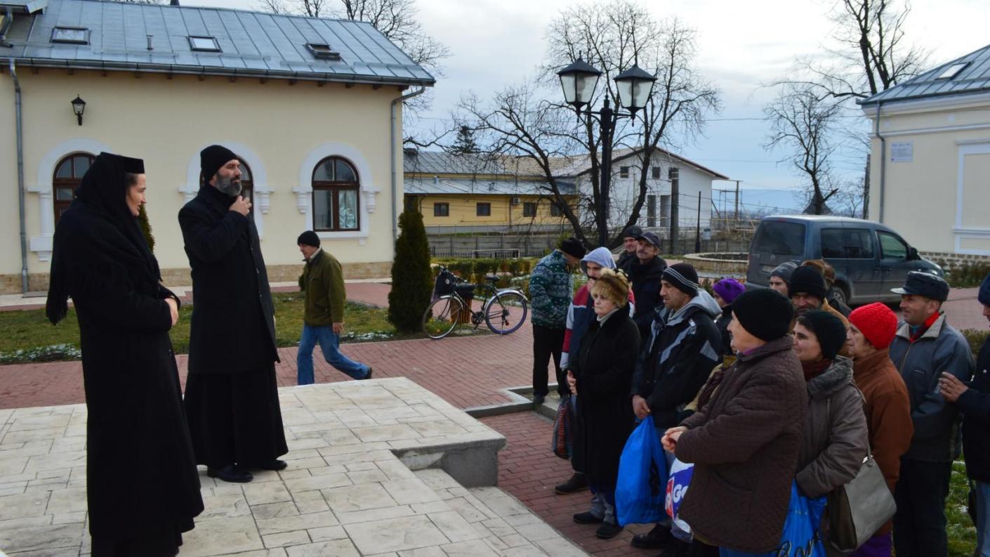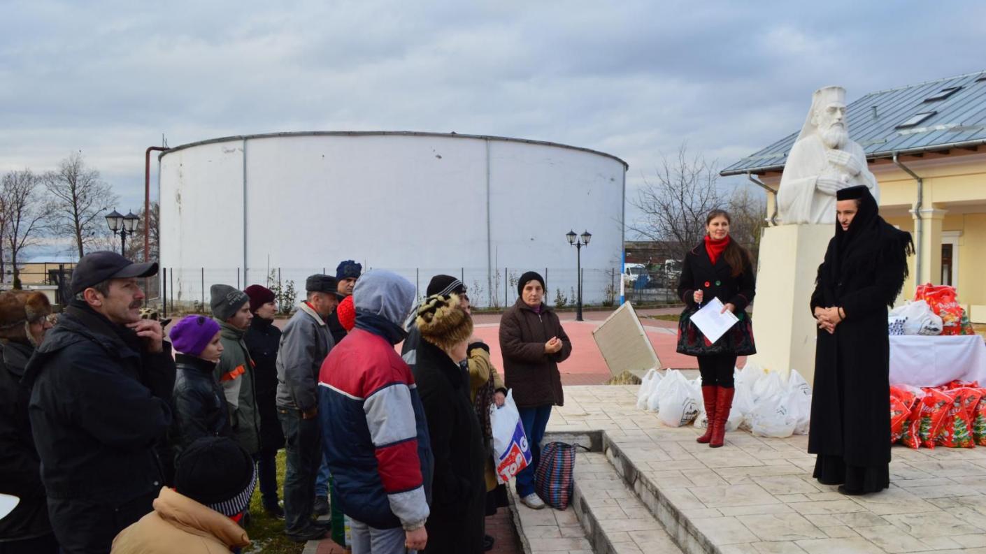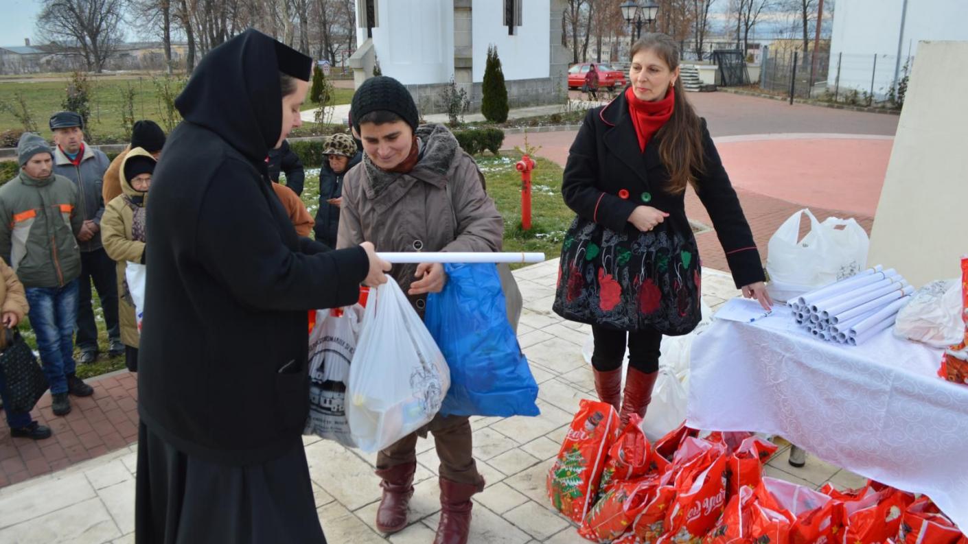 Pachetele au constat în carne pui, conserve, dulciuri, legume, calendare, la care s-au adaugat articole de îmbrăcăminte și încălțăminte. Monahia Dionisia Șchiopu, directorul Fundației ,,Episcop Melchisedec’’ a ținut un cuvânt de încurajare în fața celor prezenți, i-a îndemnat să aibă răbdare și să se roage, asigurându-i că Fundația ‚,Episcop Melchisedec’’ va face în continuare efortul de a-i sprijini, urându-le totodată, sărbători cu pace și bucurie. Cu această ocazie, directorul Fundației a mulțumit atât celor care sprijină activitatea instituției, cât și a celor implicați în oferirea acestor daruri care au reușit să bucure pe cei suferinzi.
