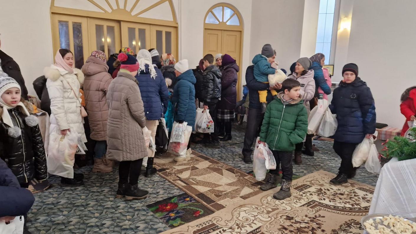 După Sf. Liturghie au fost oferite darurile consistente aduse de la Înaltpreasfințitul Părinte Ioachim, cu sprijinul Asociației „Sf. Voievod Ștefan cel Mare – Hârja” și a domnului Cornel Iftime, constând în ghetuțe noi de iarnă, articole noi de îmbrăcăminte, jucării, dulciuri, cărți de literatură și povești românești, rechizite și mai ales cartea de rugăciuni scrisă de Înaltpreasfinția Sa, oferită și celorlalți credincioși prezenți la Sf. Liturghie, nu doar copiilor. Pr. Ilarion a felicitat pe părintele protopop de Ismail Mihail Stegărescu, parohul acestei parohii, care reprezintă pentru toți preoții un model de misionarism jertfelnic pentru ceea ce are mai sfânt poporul român din diaspora: Biserica (spiritualitatea), școala românească (limba română) și educația creștin-ortodoxă (cateheza și invățătura de credință).După ce o parte din copii și creștini au colindat, Pr. Mihail a precizat la sfârșitul activității: „ Bucuria pe care am avut-o azi prin împreună slujire se aseamãnã bucuriei magilor care au avut-o când L-au gãsit pe Pruncul Hristos. Sunt foarte mulţumit pentru bucuria copiiilor şi a pãrinţilor. Vă mulţumesc mult pentru truda şi osteneala Arhiepiscopiei Romanului și Bacăului, iar mie nu îmi rãmâne decât sã dau laudã lui Dumnezeu pentru toate aceste binecuvântări”.