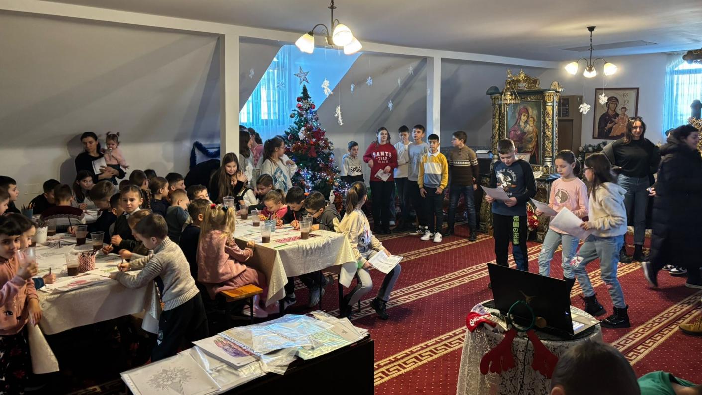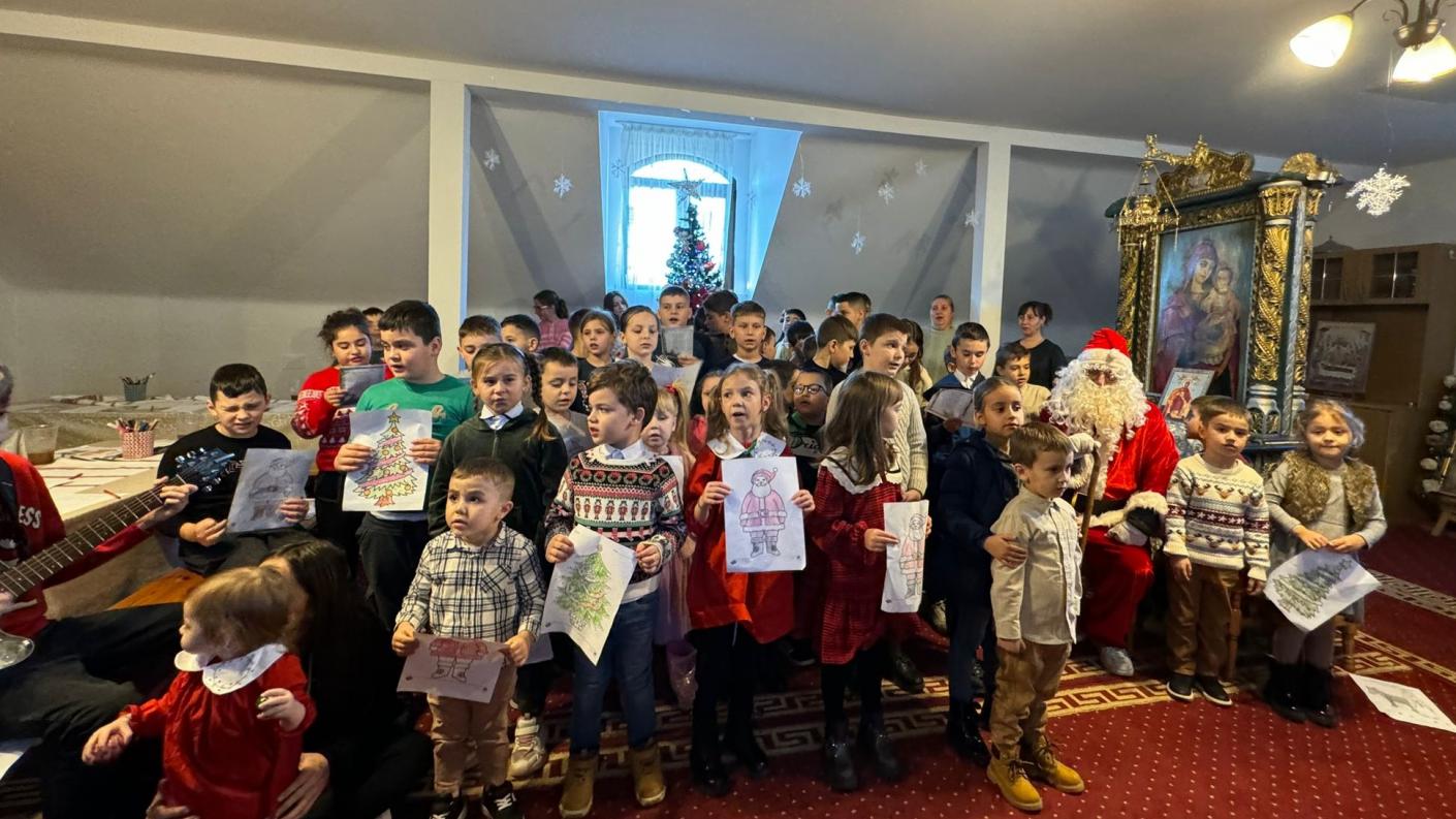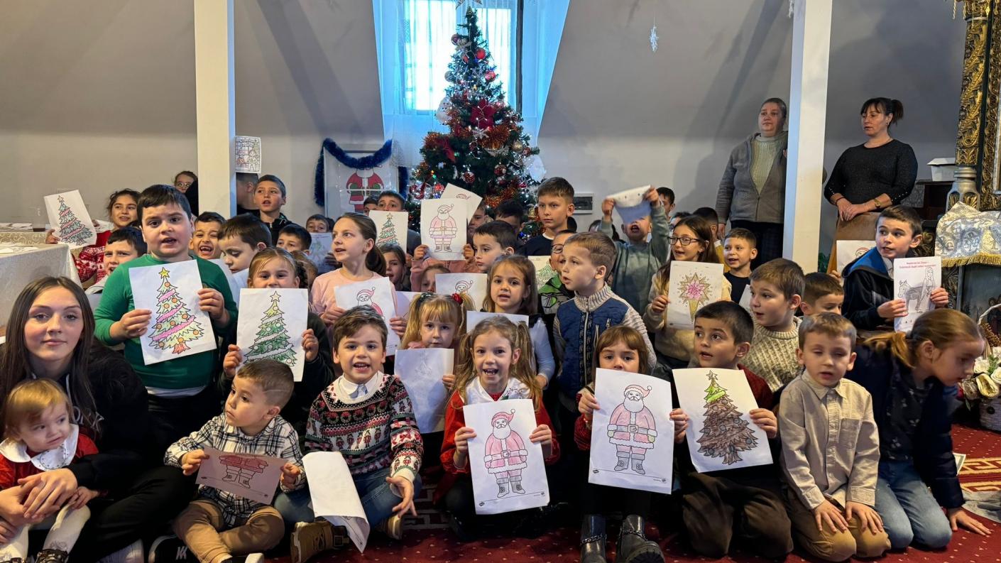 Astfel sub coordonarea doamnei preotese Adriana Iscu și a voluntarilor, copiii au fost implicați și în activități artistice desenând și colorând planșe tematice cu bradul de Crăciun și alte simboluri.