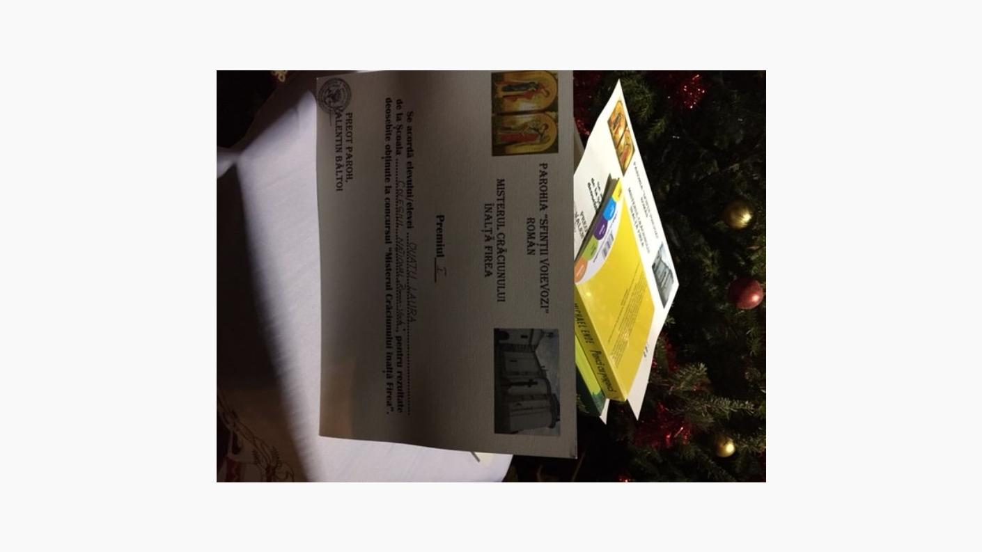La finalul Sfintei Liturghii, după ce părintele Valentin Băltoi a mulțumit tuturor celor care au sprijinit această inițiativă, au fost premiați tinerii elevi din clasele a VIII-a și a XII-a, în cadrul concursului de eseuri cu tematică religioasă ”Taina Crăciunului înalță firea”, organizat la biserică în perioada 19-23 decembrie. Tinerii câștigători ai acestui concurs au primit din partea organizatorilor cărți și diplome. De menționat este faptul că aceștia fac parte din cele două grupe de tineri care, de la începutul anului școlar, participă la meditațiile gratuite la materiile Limbă și literatură română și Istorie, oferite de doamnele profesoare Ana Maria Bejan și Mihaela Băltoi, în cadrul bisericii.