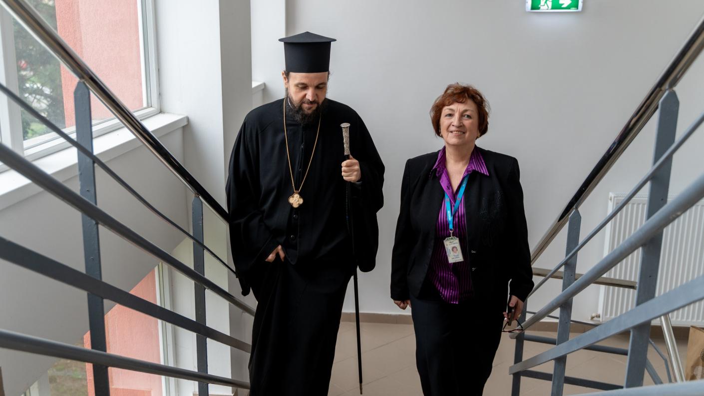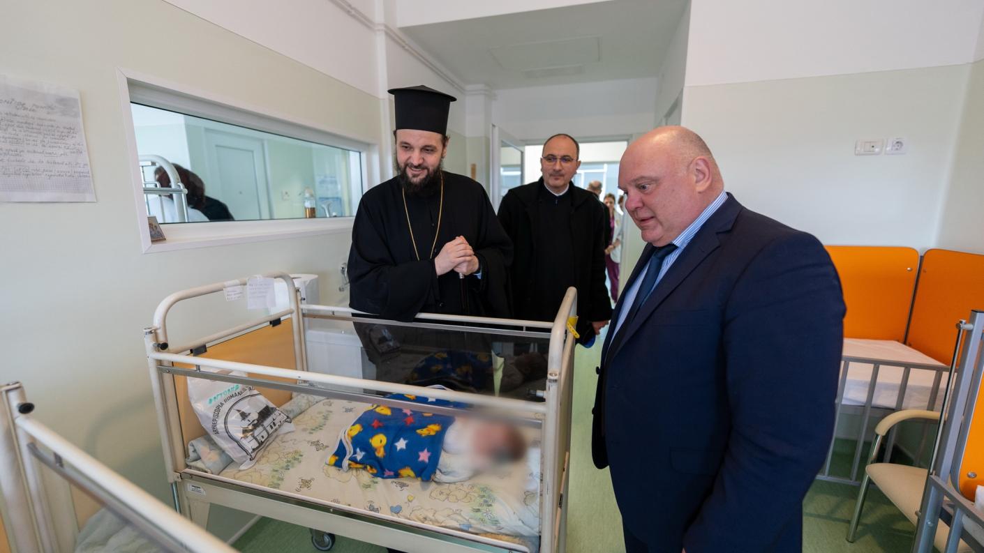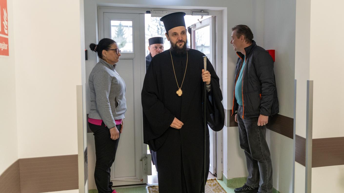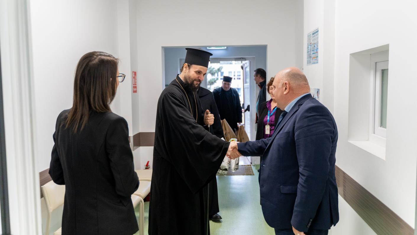 Delegația Arhiepiscopiei Romanului și Bacăului a fost întâmpinată de conducerea Spitalului Județean de Urgență Bacău, prin managerul instituției, ec. Ion Marius Savin, directorul medical, dr. Aurelia Țaga, directorul economic, ec. Mihaela Enachi, precum și de dr. Diana Balcanu, coordonatorul Secției de Recuperare Pediatrică.