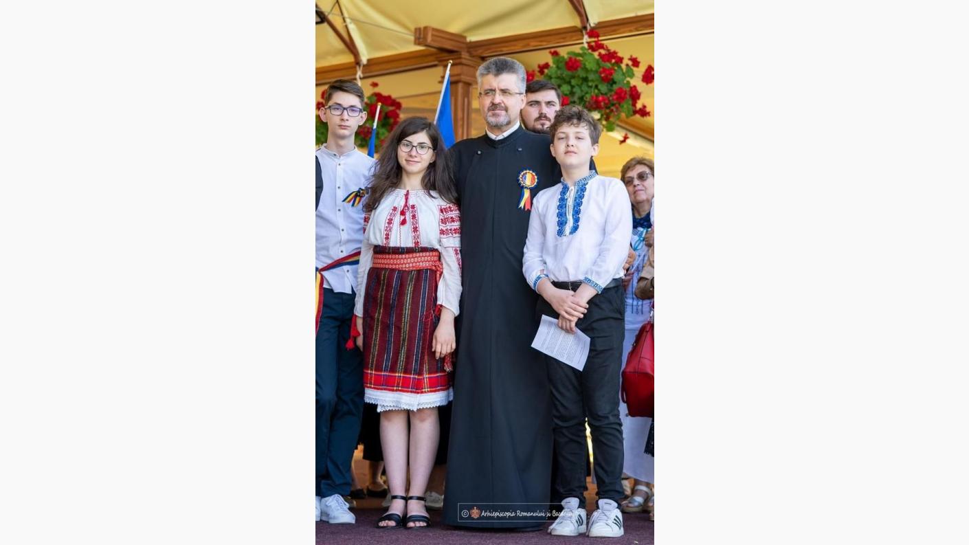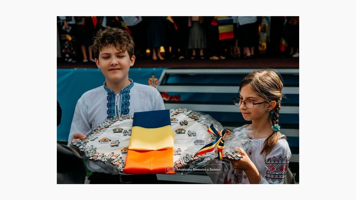 Pentru a contura în mod solemn acest moment de suflet, Înaltpreasfințitul Părinte Arhiepiscop Ioachim a sfințit Drapelul national într-un ceremonial aparte, sub privirile emoționate ale celor prezenți, rostind și un vibrant cuvânt de învățătură, încheiat astfel: ”Ne onorează prezența dumneavoastră la Centrul Eparhial istoric, ca cei ce sunteți niște flăclieri și purtători ai Drapelului nostru national. Credința, Drapelul și Patria sunt acele simboluri în care ne regăsim și prin care ne structurăm identitatea noastră națională, spirituală și de credință.” În continuare, tineri ai comunității eclesiale au glăsuit imne dedicate acestui moment, alcătuite de către Părintele Ierarh și au dăruit, întru aleasă prețuire și recunoștință, în numele enoriașilor parohiei, o hartă a României cu însemne tricolore.