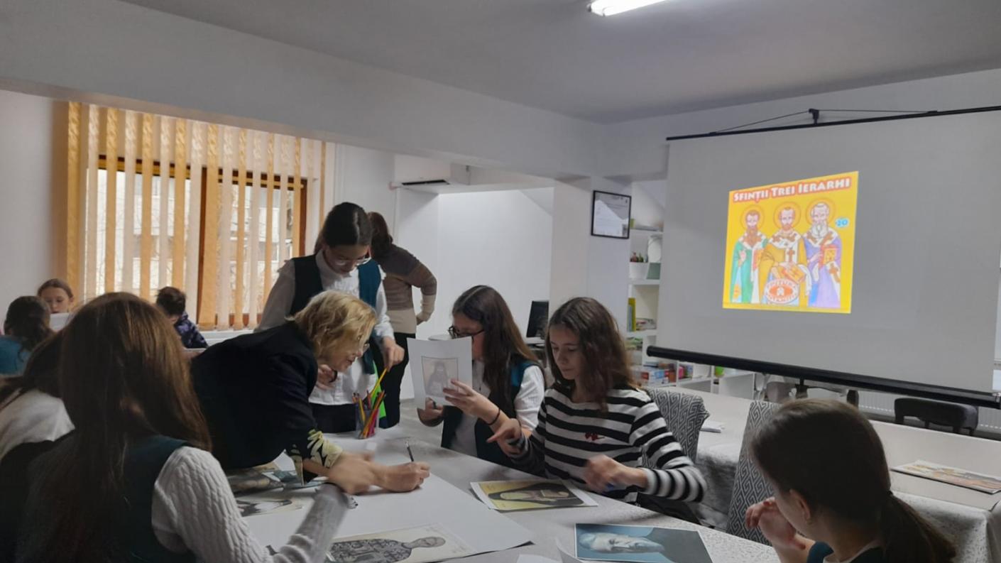 În cadrul atelierelor desfășurate de asistentul social al instituției și doamna Mihaela Bostan, Profesor pentru învățământul primar, în cadrul Școlii Gimnaziale ,,Mihai Drăgan” Bacău, cei mici au discutat despre viața și lucrarea mântuitoare a Sfinților Trei Ierarhi, modele de credință, de bunătate și curaj, precum şi despre importanța rugăciunii în viața credinciosului.