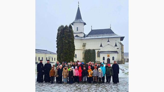 Vizita a continuat la Fundația „Episcop Melchisedec”, unde părintele Cristian Apetrei, cu sprijinul monahiei Dionisia Șchiopu, le-a vorbit copiilor despre familia duhovnicească extinsă și despre rodirea educației primite în „biserica de acasă” prin activitatea social-filantropică a Episcopului Melchisedec Ștefănescu.