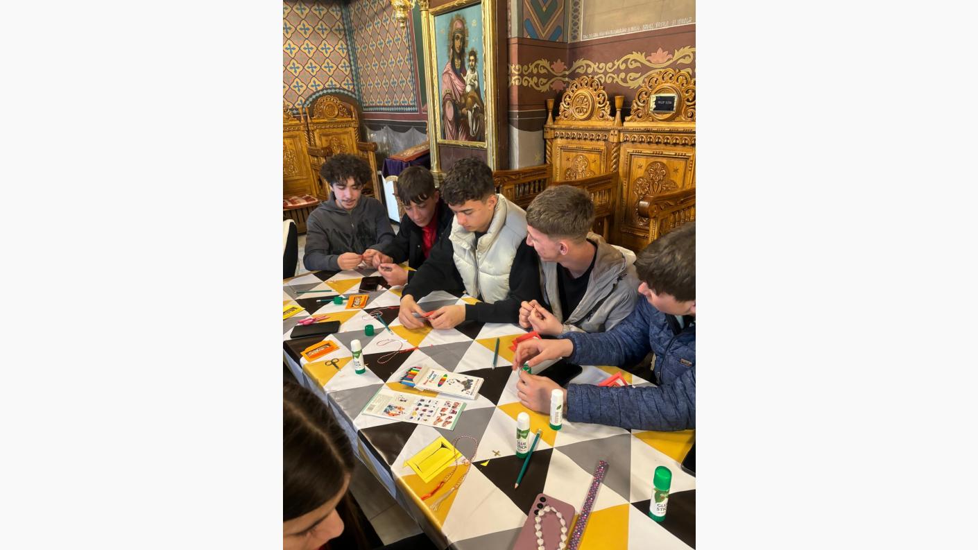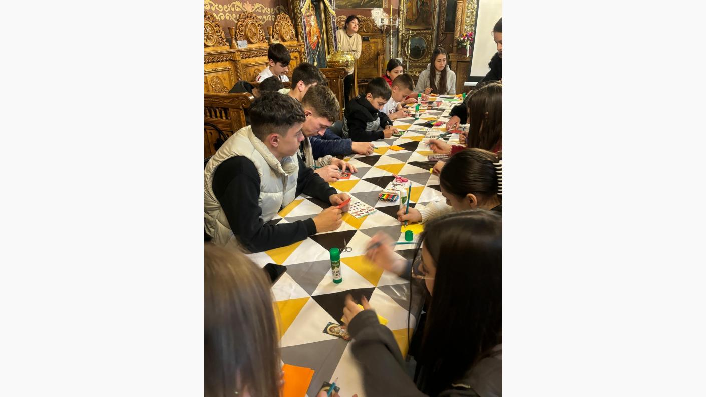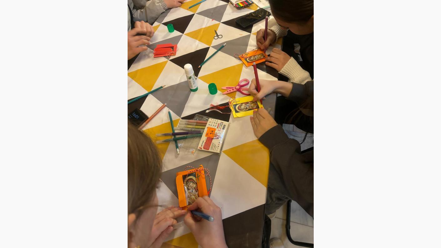 În a doua parte a activității, părintele paroh, împreună cu doamna preoteasă, au organizat un mic atelier creativ. Copiii au învățat cum să confecționeze mărțișoare, pe care urmează să le ofere în dar mamelor lor. Atmosfera a fost una plină de bucurie și entuziasm, cei mici implicându-se cu multă creativitate și dăruire în realizarea micilor daruri simbolice.