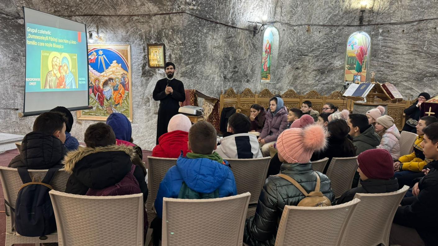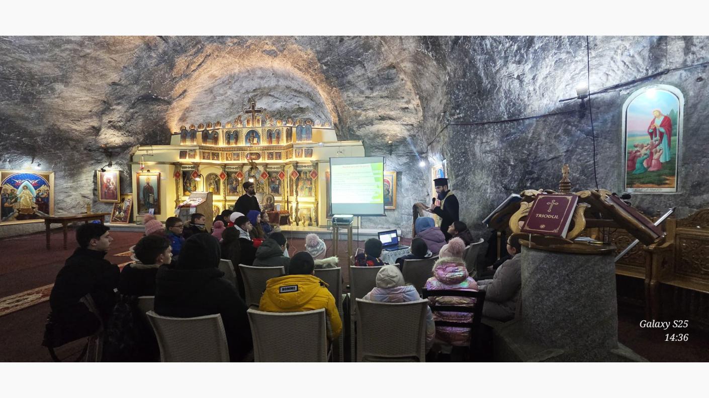 Pelerinajul pe urmele sfinților de pe valea Bistriței a continuat în după-amiaza zilei următoare, duminică, 22 februarie, cu prima cateheză din cadrul Concursului Național Catehetic, activitate ce a avut loc în adâncurile pământului, în Salina din Târgu Ocna, prin grija și dragostea conducerii acestei Sucursale. Ajunși în biserica subterană închinată Sfintei Mucenice Varvara și Sfintei Cuvioase Paraschevi din Roma, copiilor și tinerilor le-a fost prezentat conceptul concursului, după care părintele Elisei Roncea, slujitorul acestui sfânt locaș subteran, a susținut cateheza cu titlul „Porunca a V-a din Decalog – cinstirea părinților”.