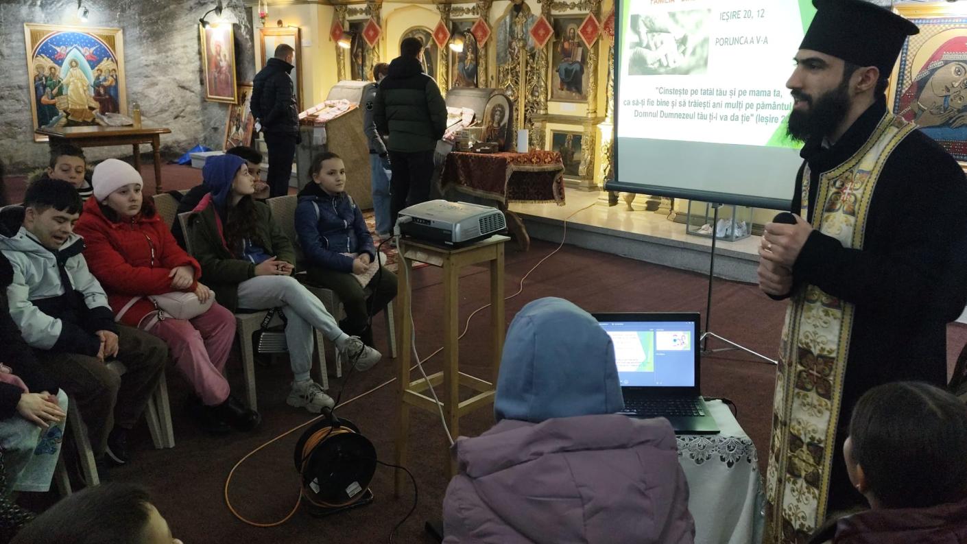 În cadrul acestei cateheze, copiii au putut învăța despre importanța și datoria noastră de a ne cinsti părinții, bunicii și pe toți oamenii în general. Pentru început au sintetizat cu toții ce înseamnă a-i cinsti pe părinți, pentru ca în a doua parte să identifice roadele ascultării de aceștia, conform poruncii și făgăduinței date de Dumnezeu prin Moise. Totodată, au fost prezentate copiilor multiplele versete din Vechiul Testament și din Noul Testament unde se reia această temă a cinstirii părinților, dar mai ales exemplul deplin al Mântuitorului Hristos, Care, pe Cruce fiind răstignit, ne-a oferit un exemplu de purtare de grijă față de Maica Sa. În finalul întâlnirii au ascultat și au pus la inimă două pilde foarte folositoare, în care au identificat importanța respectării acestei porunci și cum o pot aplica concret în viața lor.