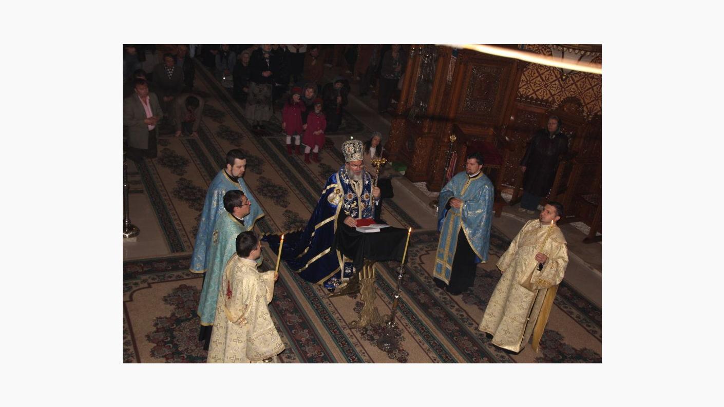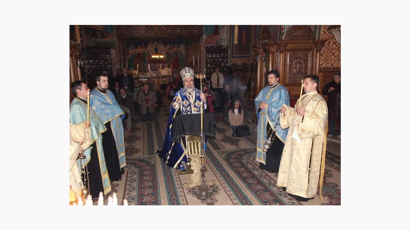 Conform rânduielii Bisericii noastre, în vinerea din săptămâna a V-a a Postului Mare în toate lăcașurile de cult se oficiază Denia Acatistului Bunei Vestiri. La biserica Precista Mare din municipiul Roman, slujba deniei a fost săvârşită astăzi, 19 aprilie 2013, de către Preasfințitul Ioachim Băcăuanul, episcop-vicar al Arhiepiscopiei Romanului și Bacăului, alături de un sobor de preoți și diaconi.