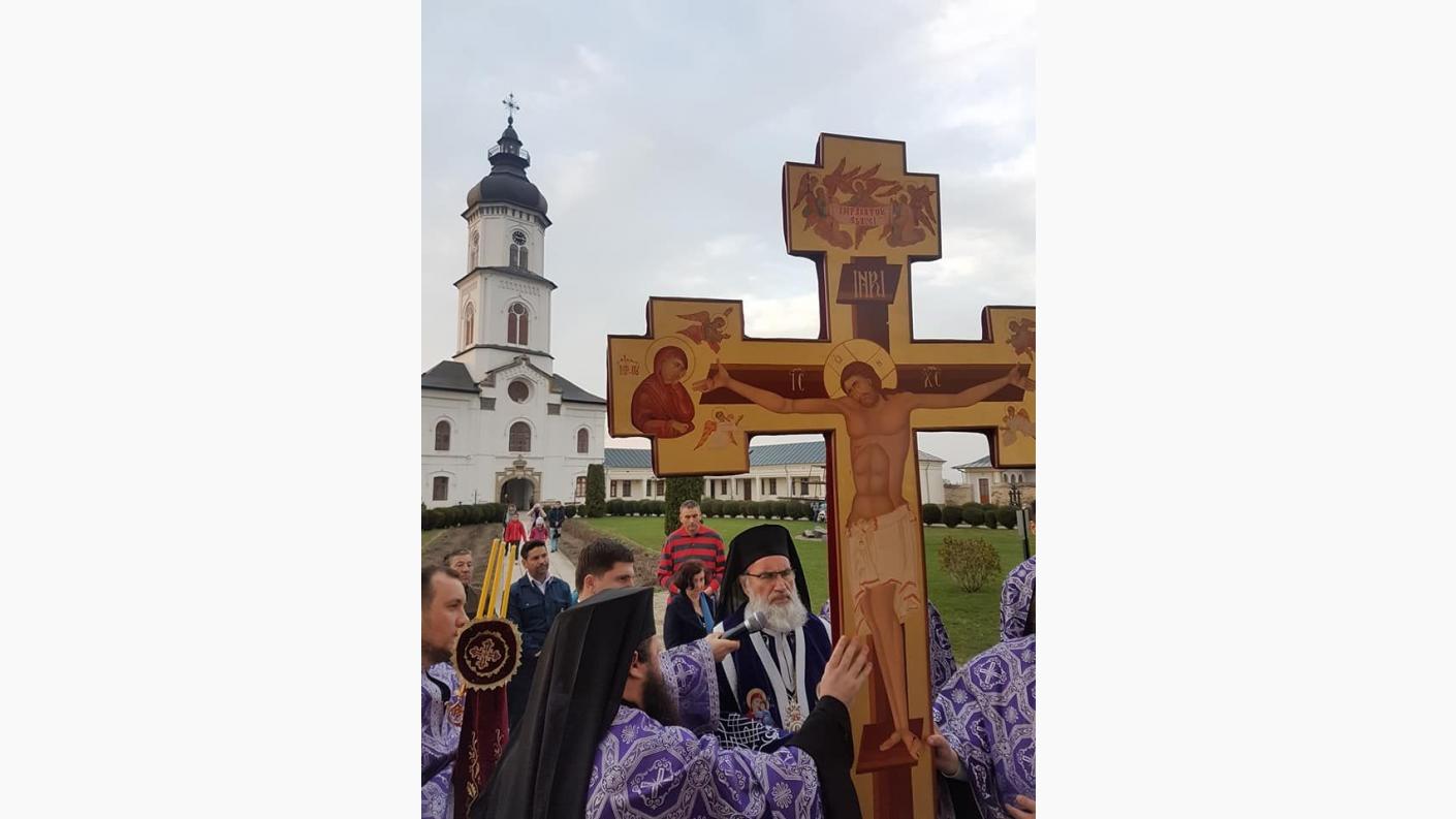 Ca și în anii anteriori, în timpul Antifonului al XV-lea, în dangătul clopotelor, Înaltpreasfințitul Părinte Ioachim a purtat în procesiune pe umeri Sfânta Cruce, pe care este pictată răstignirea Mântuitorului Iisus Hristos, purtând-o în mijlocul bisericii și apoi fiind așezată spre închinare pentru clerici și mireni. Urmând modelul ierarhului, toți cei prezenți, preoți și credincioși și-au plecat genunchii închinându-se și rugându-se la picioarele ”Celui ce a spânnzurat pământul pe ape”.