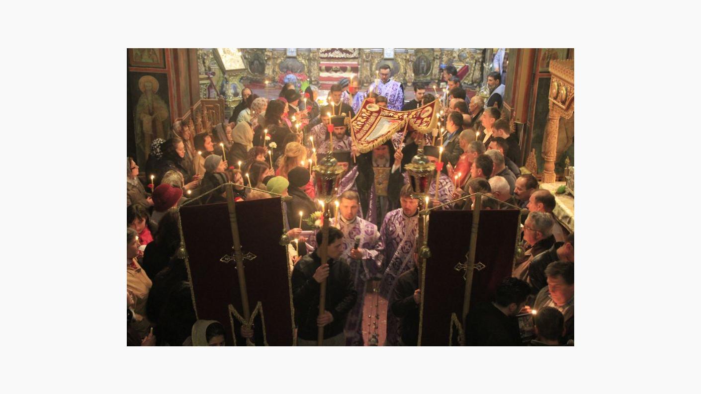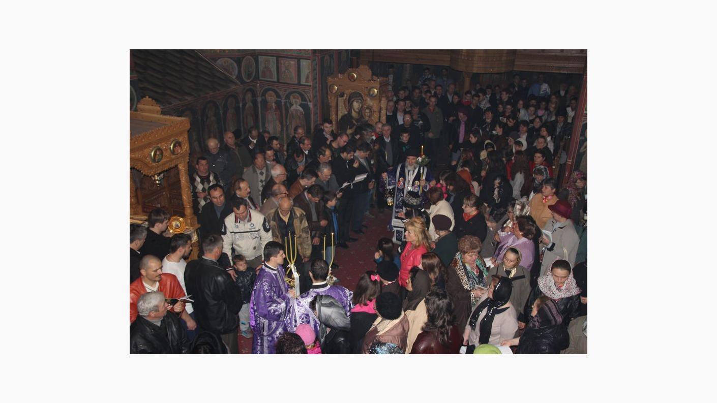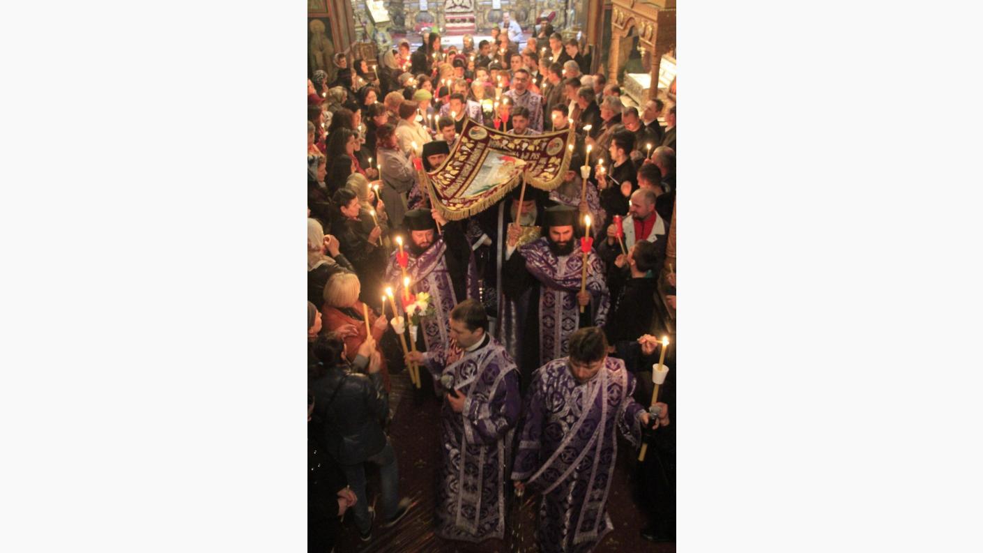 Catedrala „Sf. Cuv. Parascheva” din Roman s-a dovedit a fi neîncăpătoare în Vinerea Mare pentru mulţimea credincioşilor care au dorit să ia parte, alături de Preasfinţitul Părinte Ioachim Băcăuanul, Episcop-vicar al Arhiepiscopiei Romanului şi Bacăului, la Denia Prohodului Domnului. Aşa cum este tradiţia acestei slujbe deosebite, la sfârşitul Doxologiei, purtând în mâini făclii sau lumânări aprinse, mulţimea credincioşilor, alături de ierarh, au participat la tradiţionala procesiune în jurul Catedralei, care simbolizează ducerea către mormânt a Mântuitorului. După procesiune, toţi credincioşii au trecut pe sub Sfântul Epitaf, la intrarea în lăcaşul de cult. Apoi, acesta a fost aşezat pe Sfânta Masă. La sfârşitul Deniilor, Preasfinţia Sa a ţinut un cuvânt de învăţătură, în care a explicat semnificaţia acestei zile liturgice: „Slujba Prohodului Domnului încheie perioada sacră a Săptămânii Pătimirilor Mântuitorului nostru Iisus Hristos. După ce am cântat aceste stări pentru îngroparea Domnului, au urmat binecuvântările Învierii, iar după cântarea „Slavă Ţie Celui Care ne-ai arătat nouă lumina”, am purces într-o procesiune în jurul bisericii, purtând Sfântul Epitaf, care reprezintă punerea în mormânt a Mântuitorului nosutr Iisus. Din punct de vedere liturgic, acum la sfârşitul acestei utrenii, s-a citit mai întâi un pasaj din Vechiul Testament, din proorocul Iezechiel, în care se vorbeşte despre învierea cea de obşte. Apoi s-a citit un fragment din Epistola Câtre Corintenti a Sfântului Apostol Pavel, iar la urmă textul din Evanghelia lui Matei, în care se vorbeşte de istoricitatea Mântuitorului Iisus Hristos, cum a fost aşezat într-un mormânt nou, care era al unui notabil al timpului, Iosif din Arimateea. Toate acestea au semnificaţii deosebite. Căci în Săptămâna Patimilor am trăit dimensiunea supremă a sacrificului Domnului, care era o taină. De ce s-a răstignit? De ce a murit pe cruce? Dacă am rămâne întru dragostea Lui, atunci am înţelege şi sensul profund al jertfei Sale mântuitoare ”, a spus Preasfinţitul Ioachim Băcăuanul.