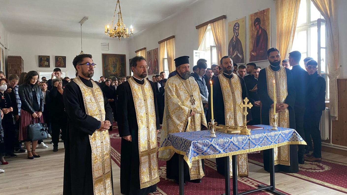 Slujba de Te-Deum la începutul anului școlar a avut loc sub protia pr. arhim. Andrei Ioniță, delegat al Centrului eparhial, însoțit de preoți profesori din instituția de învățământ seminarial romașcan. La sfârșitul slujbei, la care au asistat elevi, părinți și dascăli din liceu, pr. arhimandrit a dat citire unui cuvânt de binecuvântare din partea Înaltpreasfințitului Arhiepiscop Ioachim, adresat comunității educaționale a liceului aflat sub ascultare canonică de Chiriarhul Romanului și Bacăului. Adresându-se elevilor aflați la începutul unui an în care sunt chemați să sporească în știință și în duh, Înaltpreasfinția Sa a precizat: „Tinerii care se formează sub aripa protectoare a Bisericii și care își hrănesc mintea și inima din cuvintele nemuritoare ale Evangheliei, trebuie să fie următori ai apostolilor și misionari pentru vremurile de astăzi, actualizând mesajul hristic pentru a hrăni și călăuzi sufletele creștinilor în contextul noilor mutați culturale și religioase actuale. De aceea îi îndemnăm pe tinerii care urmează cursurile Liceului Teologic să asimileze cu responsabilitate învățăturile dascălilor lor, pentru ca prin efortul misionar pe care îl vor desfășura în societate, să mărturisească pe Hristos și să fie factorii care să semene între oameni pacea și concordia, adevărul și dreptatea”.