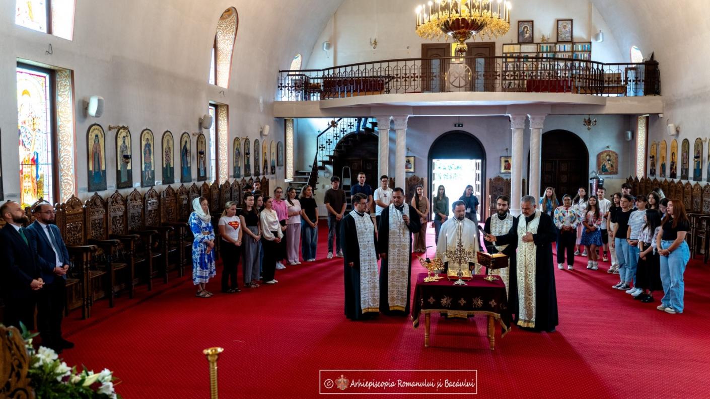 Slujba de Te Deum a fost săvârșită sub protia pr. Valentin Băltoi, consilier cultural, alături de un sobor de preoți, iar la finalul acesteia, cuvântul de binecuvântare al Înaltpreasfințitului Ioachim, Arhiepiscopul Romanului și Bacăului, a fost transmis de către delegatul chiriarhului: